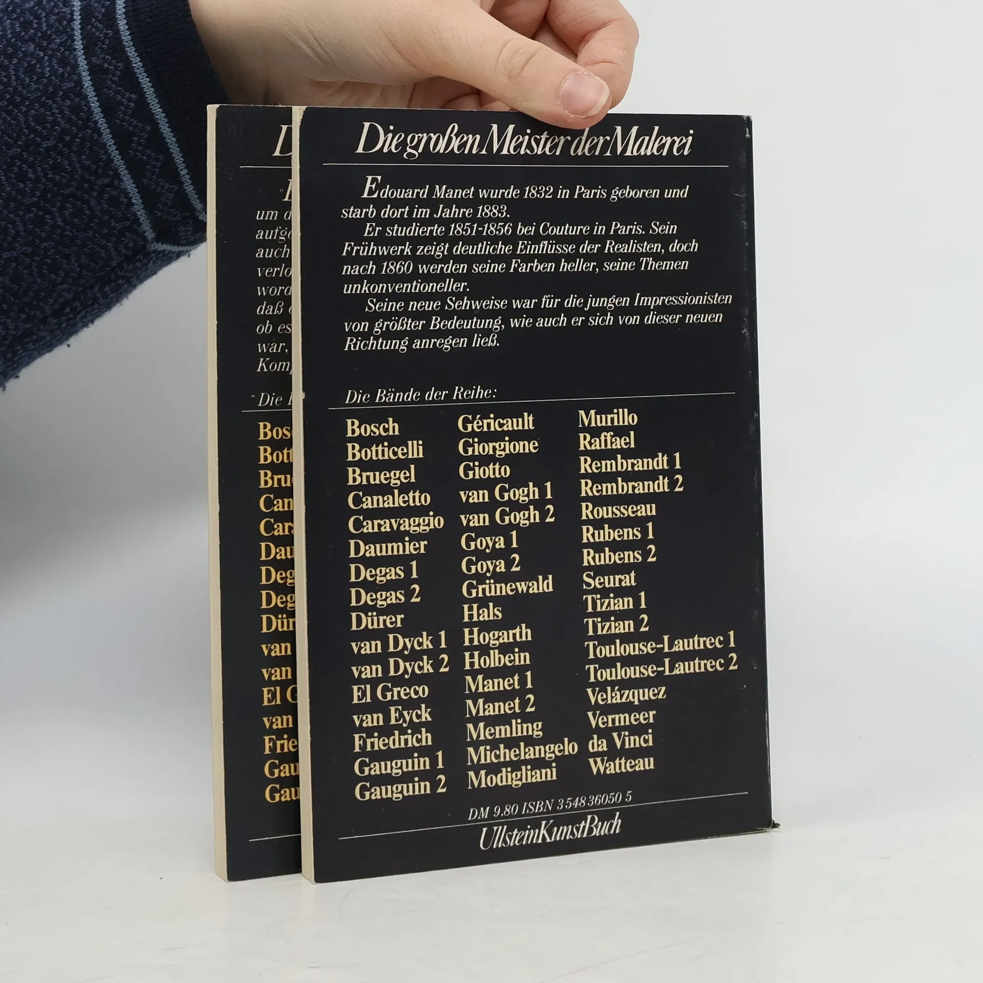 Diese Buchreihe bietet eine umfassende Auseinandersetzung mit dem Leben und Werk des französischen Malers Édouard Monet, einer der zentralen Figuren des Impressionismus. Die Bände beleuchten Monets künstlerische Entwicklung, seine Techniken und die Themen, die sein Schaffen prägten, wie Licht, Farbe und Natur. Der erste Band konzentriert sich auf Monets frühe Jahre, seine Ausbildung und die Einflüsse, die ihn prägten. Hier werden wichtige Stationen seines Lebens und seiner Karriere dargestellt, einschließlich seiner Begegnungen mit anderen Künstlern und seiner Rolle in der Impressionistenbewegung. Im zweiten Band wird die spätere Schaffensphase Monets behandelt, in der er seine bekanntesten Werke schuf. Die Analyse seiner Gemälde, insbesondere der Serien wie „Seerosen“ und „Kathedrale von Rouen“, zeigt die Entwicklung seiner Stilmittel und seine Auseinandersetzung mit der Wahrnehmung von Licht und Raum. Die Bände sind reich an Abbildungen und bieten detaillierte Erklärungen zu den einzelnen Werken. Sie sind darauf ausgelegt, ein tieferes Verständnis für Monets Einfluss auf die Kunstgeschichte zu vermitteln und die Leser in die Welt des Impressionismus einzuführen.