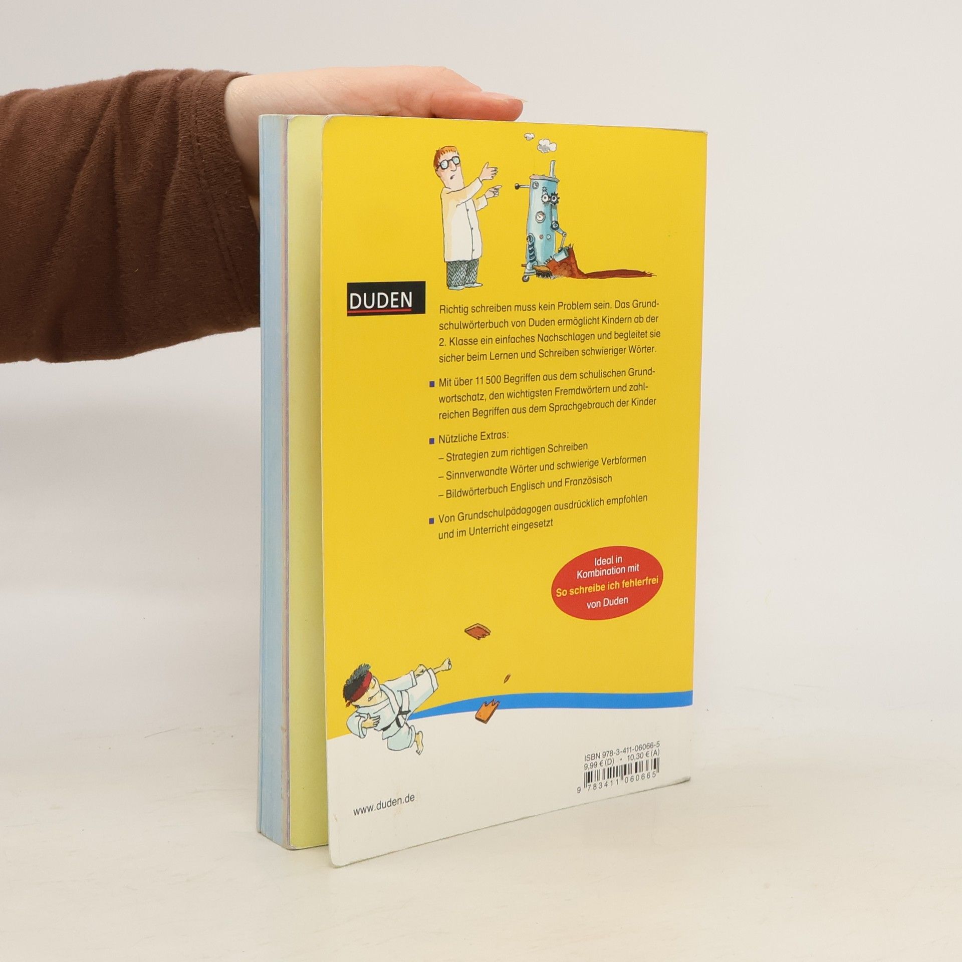 Dieses Wörterbuch enthält mit 11.500 Begriffen den Wortschatz für die Grundschulzeit und ermöglicht Kindern ab der 2. Klasse ein einfaches Nachschlagen. Es begleitet sie sicher beim Lernen und Schreiben schwieriger Wörter. Bunte Suchhilfen erleichtern das rasche Finden der Wörter. Im Anhang finden sich nützliche Extras wie ein Bildwörterbuch mit englischen und französischen Begriffen, Strategien für eine sichere Rechtschreibung, eine Übersicht schwieriger Wörter, die oft falsch geschrieben werden, sowie eine Liste sinnverwandter Wörter.