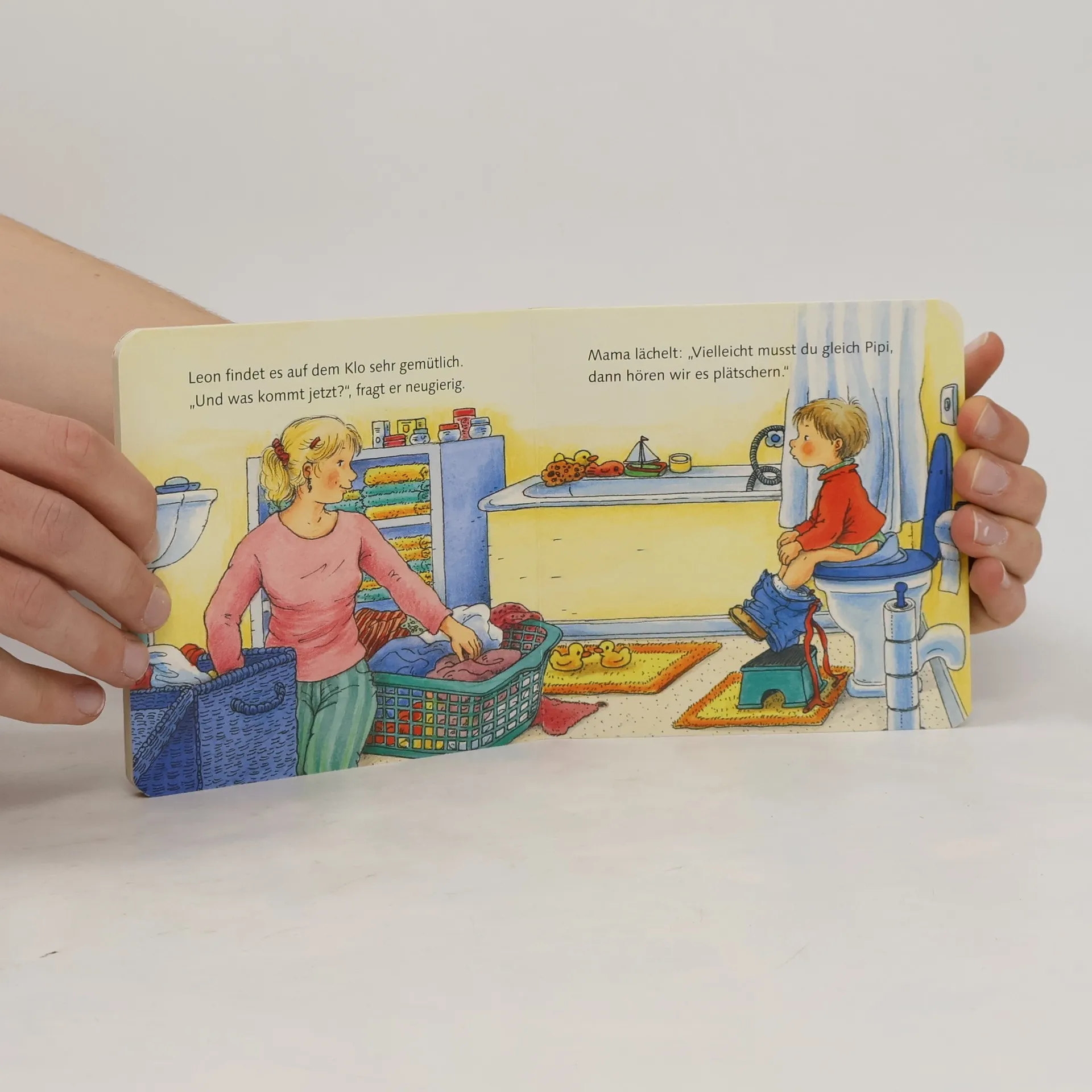 Auf seinem Klositz fühlt sich Leon wie auf einem Thron, aber es ist schon ein wenig langweilig. Doch Leon weiß sich zu helfen! Und dann muss er auch endlich Pipi machen