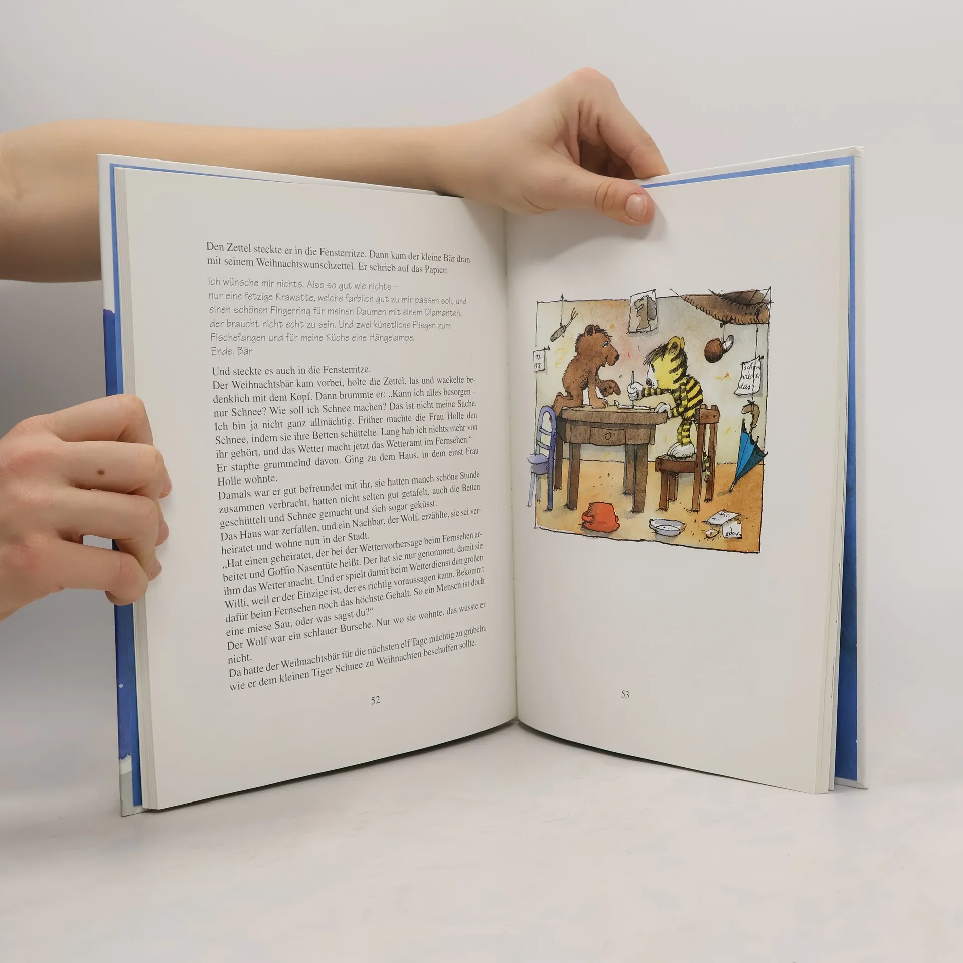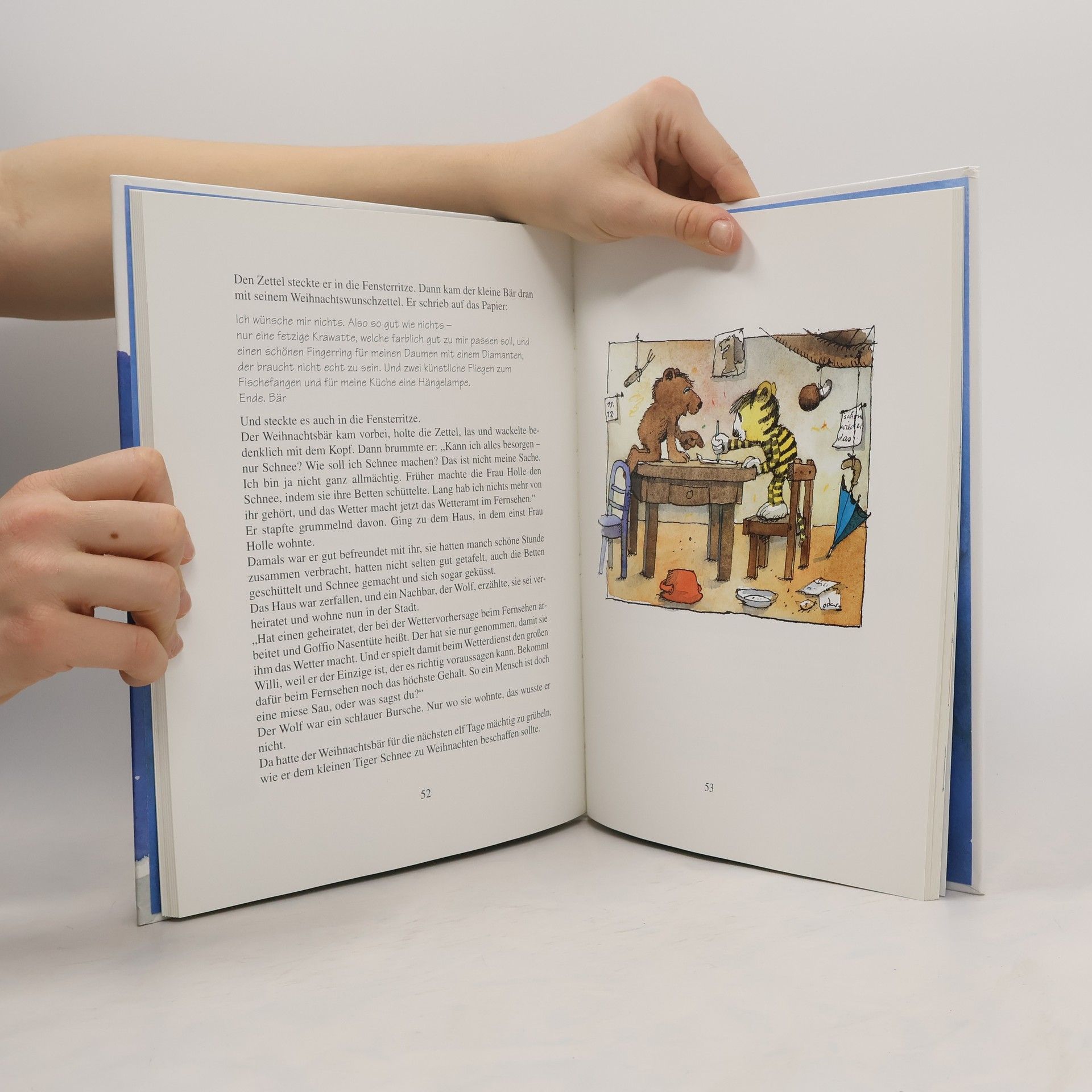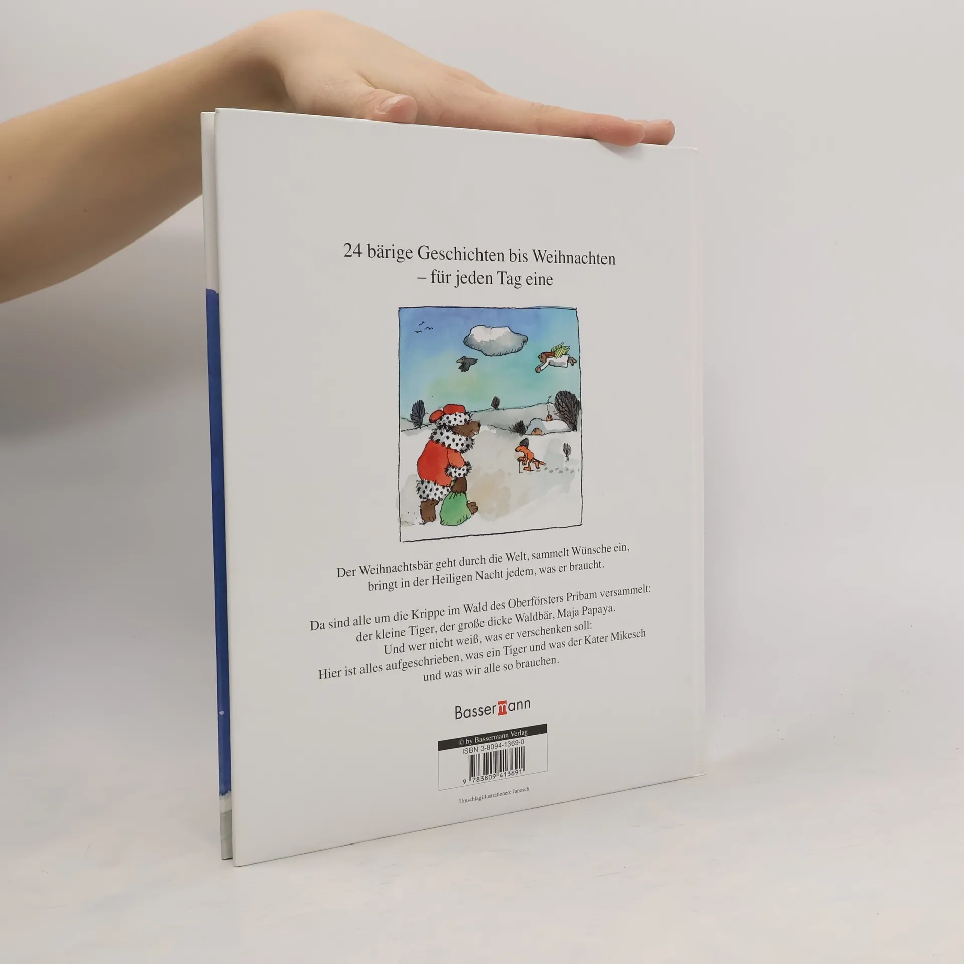 Der Weihnachtsbär geht durch die Welt, sammelt Wünsche ein, bringt in der Heiligen Nacht jedem, was er braucht. Da sind alle um die Krippe im Wald des Oberförsters Pribam versammelt: der kleine Tiger, der große dicke Waldbär, Maja Papaya. Und wer nicht weiß, was er verschenken soll: Hier ist alles aufgeschrieben, was ein Tiger und was der Kater Mikesch und was wir alle so brauchen.