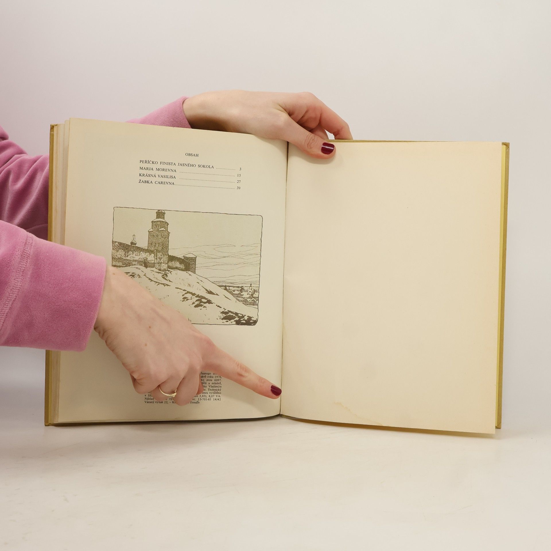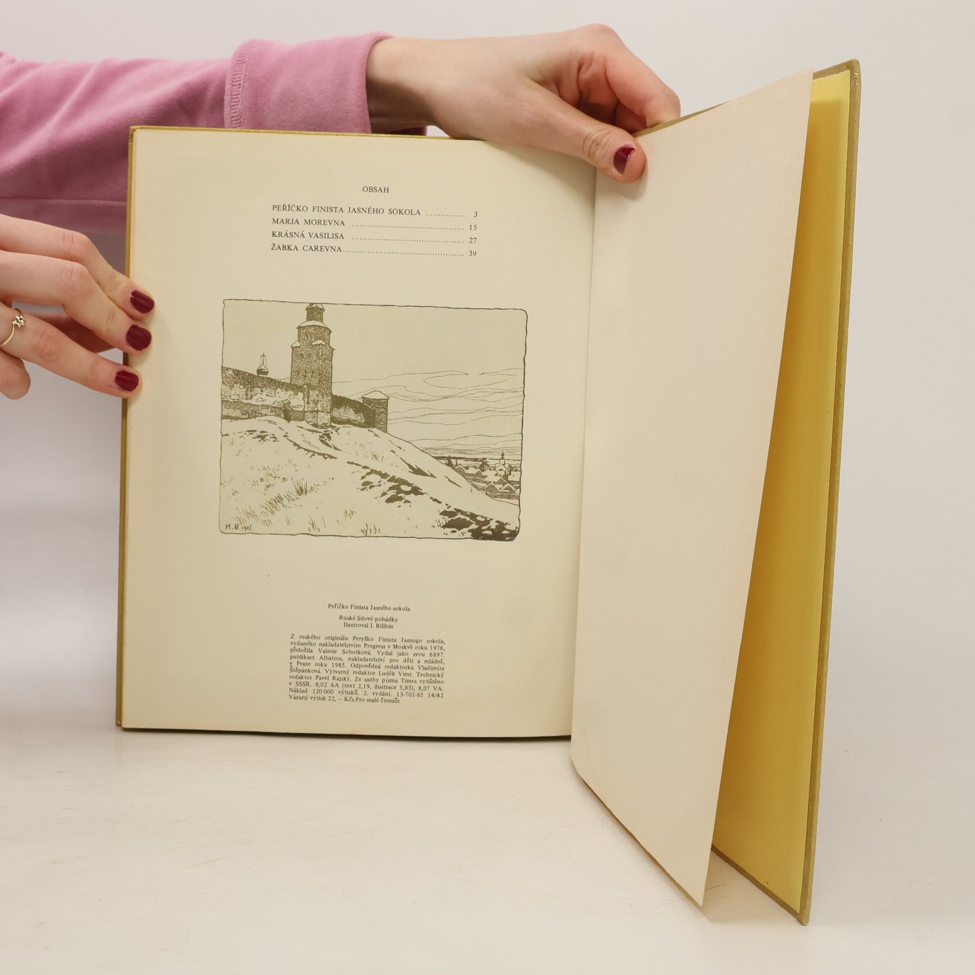 Soubor čtyř klasických ruských pohádek - Peříčko Finista Jasného sokola, Marja Morevna, Krásná Vasilisa, Žabka carevna - ve výpravném bohatě ilustrovaném vydání.
