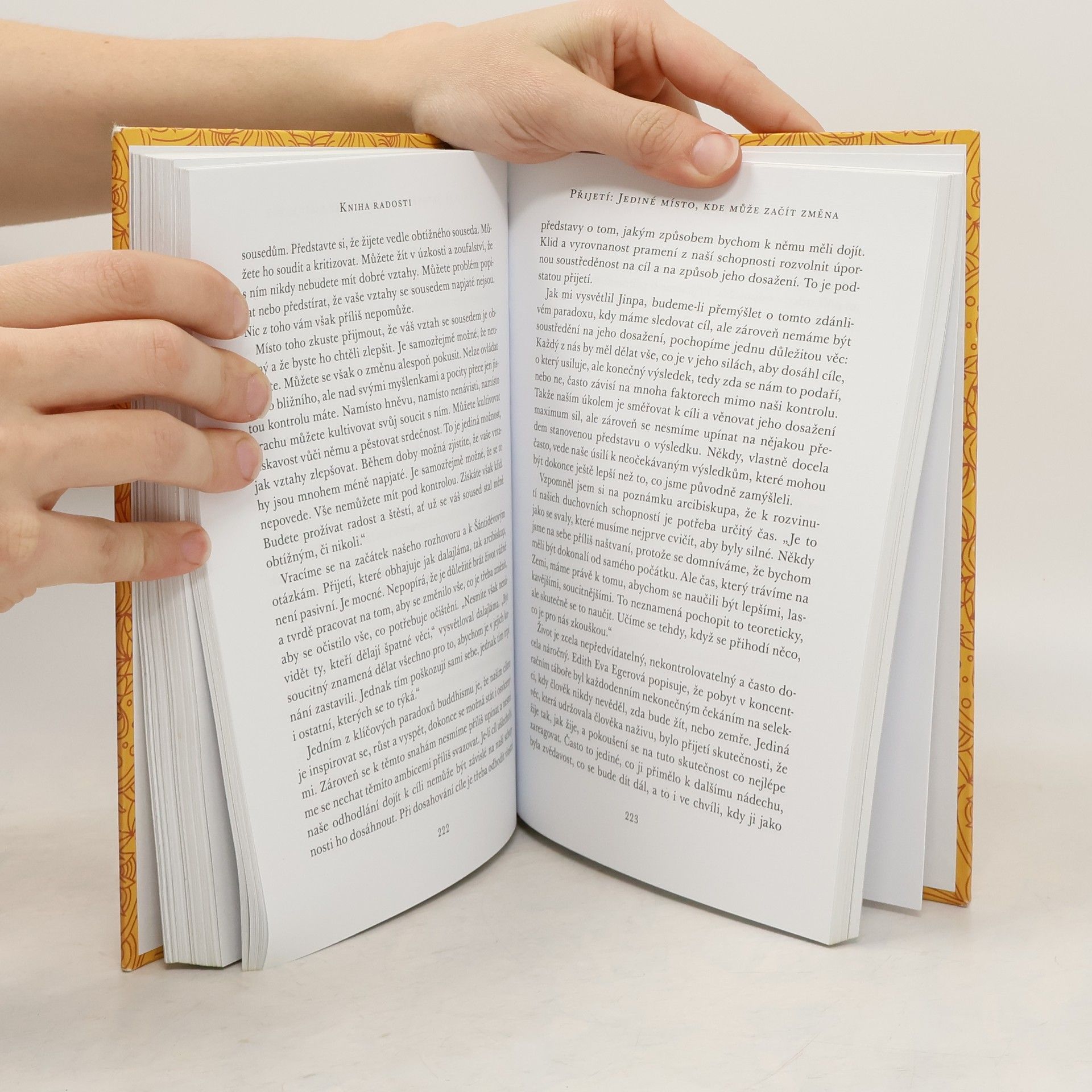 Jak být šťastný v dnešním proměnlivém světě. Pokud se vnímáte jako obyčejný člověk, neměli byste se chovat jako někdo výjimečný. Bez ohledu na status jsme si všichni rovni. Svět se rychle mění a čelíme tragédiím, katastrofám a osobním neštěstím. Můžeme však najít radost i v těžkých časech a pracovat na svém přístupu k sobě a ostatním. Kniha radosti přináší zkušenosti dvou neuvěřitelných mužů, kteří navzdory těžkým životním zkouškám zůstávají veselí, soucitní a neztrácejí víru v lidstvo. Douglas Abrams propojuje příběhy dalajlámy a arcibiskupa Desmonda Tutua, přičemž jejich odpovědi na otázky o radosti, pokory, humoru, odpuštění a vděčnosti doplňuje vědeckými poznatky. Kniha nás vede od zaměření na sebe k zaměření na společnost, ukazuje, jak se poučit z utrpení a uvědomit si, že jsme součástí velkého společenství. Nikdo se nevyhne utrpení, ale to neznamená, že nemůžeme prožívat radost. Netrapme se tím, co nemůžeme změnit. „Pokud s tím lze něco udělat, jaký je důvod ke sklíčenosti? Pokud se nic dělat nedá, k čemu je být sklíčený?“ Nechte se inspirovat moudrostí dvou „veselých kop“, které se umějí zasmát samy sobě a otevřou vám oči, rozesmějí vás i rozpláčou.