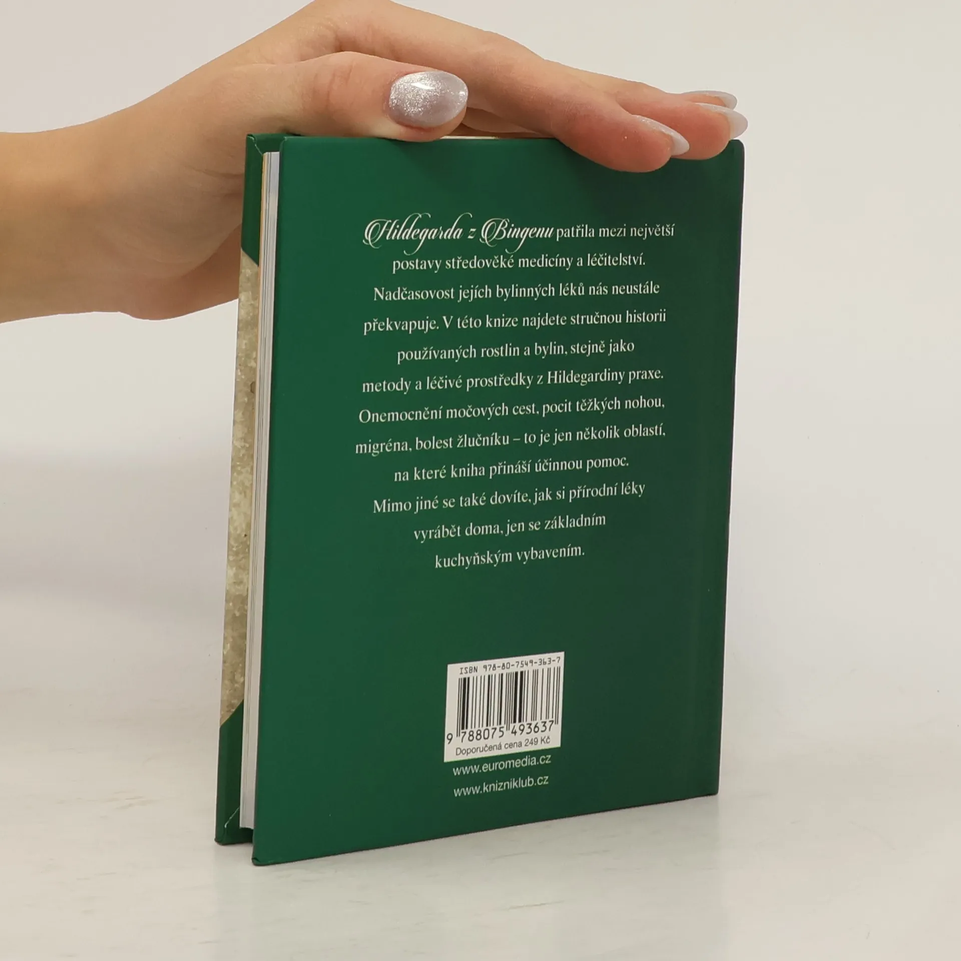 Hildegarda z Bingenu patří mezi největší postavy středověké medicíny. Nadčasovost a účinnost jejích bylinných léků nás neustále překvapuje. V této knize najdete stručnou historii používaných rostlin a bylin, stejně jako metody a léčivé prostředky z Hildegardiny praxe. Onemocnění močových cest, pocit těžkých nohou, migréna, žlučník – to je jen několik oblastí, na které kniha přináší účinnou pomoc. Mimo jiné se také dovíte, jak si přírodní léky vyrábět doma, jen za pomoci základního kuchyňského vybavení.