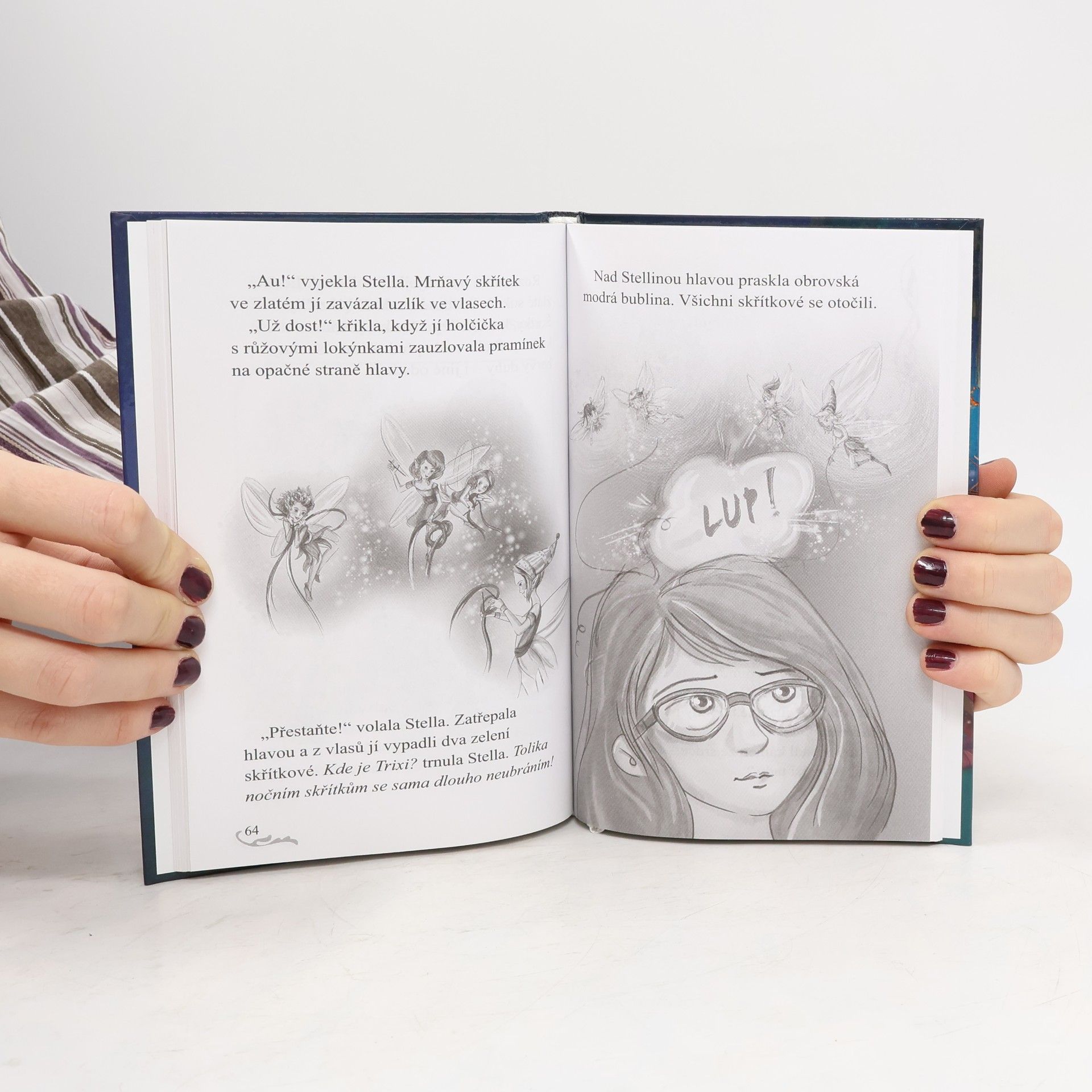 Když Stella zjistí, že musí nosit brýle, je z toho nešťastná. Ale nejenže jí nové brýle moc sluší a bezvadně se s nimi čte, navíc jsou kouzelné. Díky nim totiž Stella vidí třpytivé noční skřítky! Hned první noc se seznámí s Trixie, skřítkem šmodrchalkou, která spolu se svými zlomyslnými kamarádkami zamotává a zaplétá spícím holčičkám a klukům vlasy. To by tak hrálo, aby se kvůli ní Stella musela dát ostříhat! Podaří se jí svoji novou kamarádku přesvědčit, aby jí svým uzlíkováním neznepříjemňovala život?