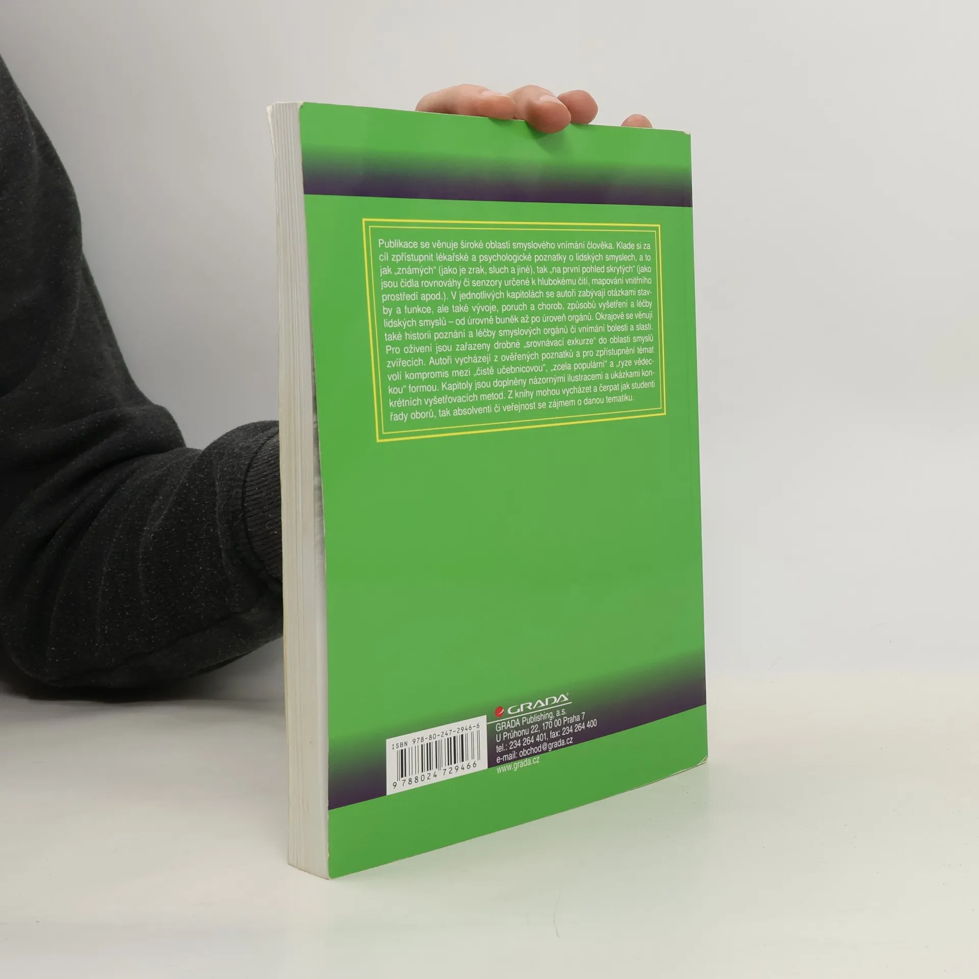 Publikace se věnuje široké oblasti smyslového vnímání člověka. Klade si za cíl zpřístupnit lékařské a psychologické poznatky o lidských smyslech, a to jak známých (zrak či sluch), tak na první pohled skrytých (např. čidla rovnováhy či senzory hlubokého čití). Autoři se zabývají otázkami stavby a funkce, ale také vývoje, poruch a chorob, způsobů vyšetření a léčby lidských smyslů – od úrovně buněk až po úroveň orgánů. Okrajově se věnují také historii poznání a léčby smyslových orgánů či vnímání bolesti a slasti. Pro oživení jsou zařazeny drobné „srovnávací exkurze“ do oblasti smyslů zvířecích. Autoři vycházejí z ověřených poznatků a pro zpřístupnění témat volí kompromis mezi učebnicovou, populární a vědeckou formou. Kapitoly jsou doplněny názornými ilustracemi a ukázkami konkrétních vyšetřovacích metod. Z knihy mohou čerpat jak studenti řady oborů, tak absolventi či veřejnost se zájmem o danou tematiku.