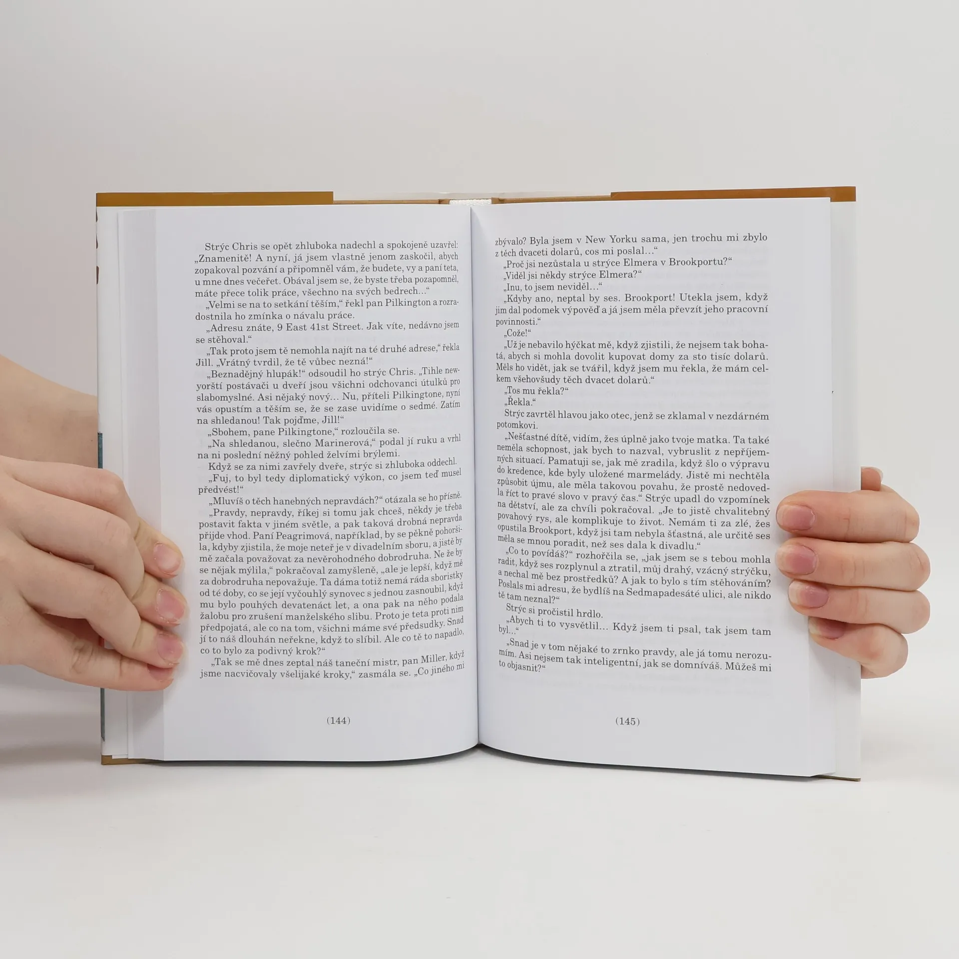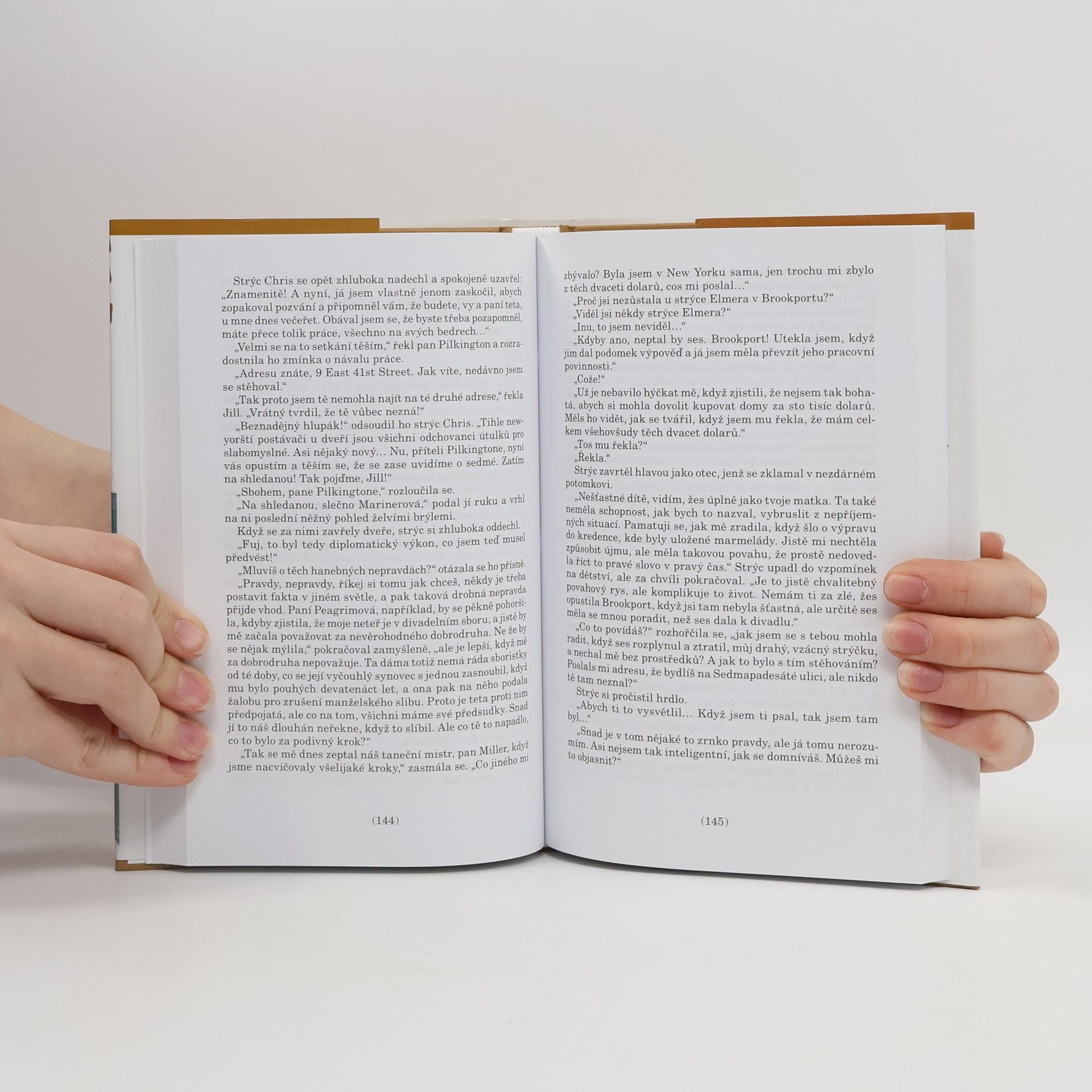 Jill má plno dobrých vlastností. Kromě jiného je hezká, milá a má peníze. Navíc je zasnoubená s Derekem, nadějným členem Dolní sněmovny. Stačí překonat pár drobností - pro začátek musí udělat dobrý dojem na matku svého snoubence, a budoucnost bude jenom růžová. Ovšem osud s ní má jiné plány, a tak jí postaví do cesty nejen nešťastný začátek slavnostní večeře, ale i požár v divadle a dávného přítele z dětství, a navíc ji obdaří rozverným strýčkem. Je to sice zábavný, elegantní pán, ale poněkud si plete své a cizí peníze. A tak dlouho nepotrvá a Jill se ocitne bez peněz a bez snoubence a vzápětí i na cestě do Ameriky. Wodehouse opět marnotratně hýří nápady a zábavnými historkami, jak lze u tohoto anglického humoristy očekávat, takže jeho skalní čtenáři nebudou zklamaní. První vydání.