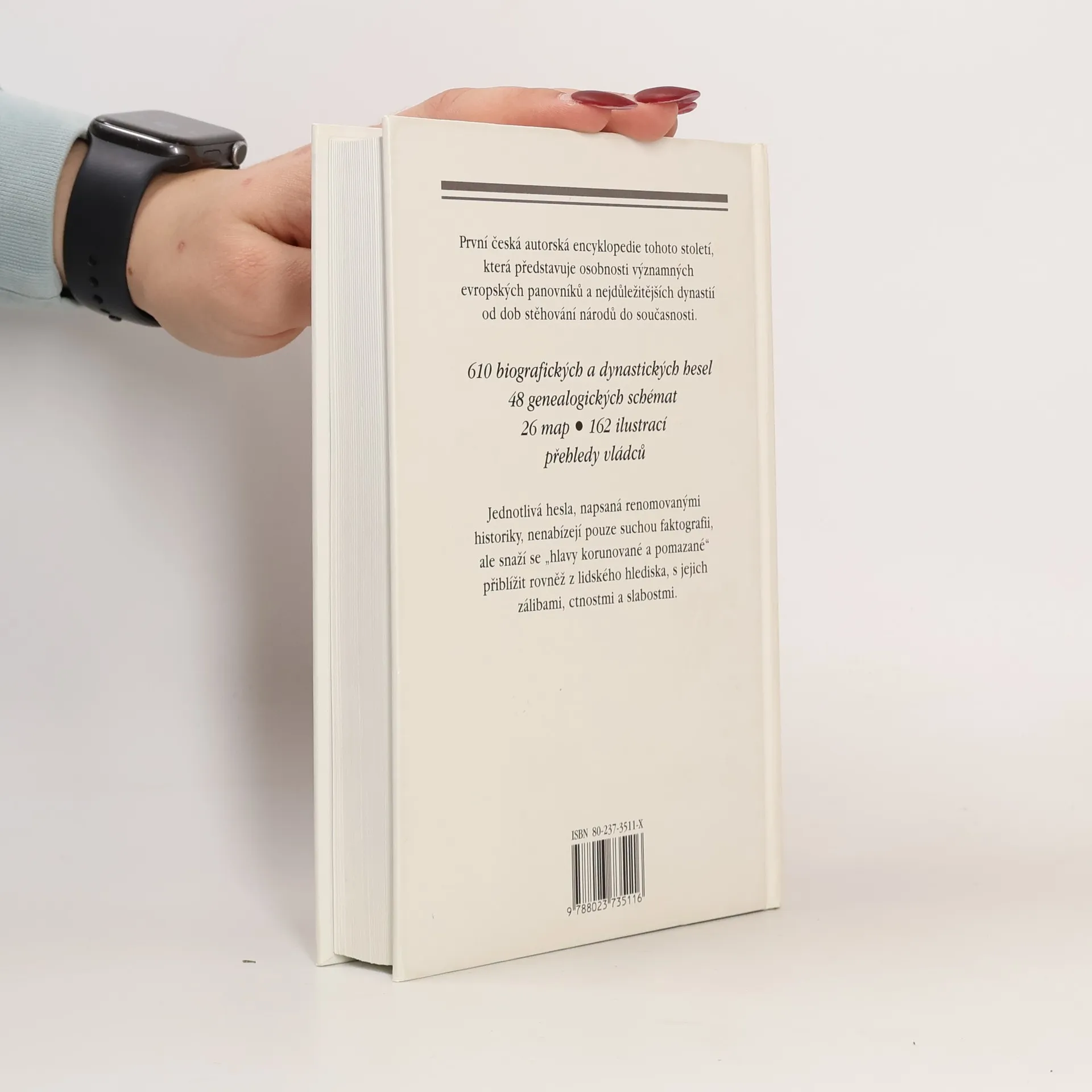 Encyklopedie představuje osobnosti významných evropských panovníků a nejdůležitějších dynastií od dob stěhování národů do současnosti. Obsahuje 610 biografických a dynastických hesel, 48 genealogických schémat, mapy, ilustrace a přehledy vládců.