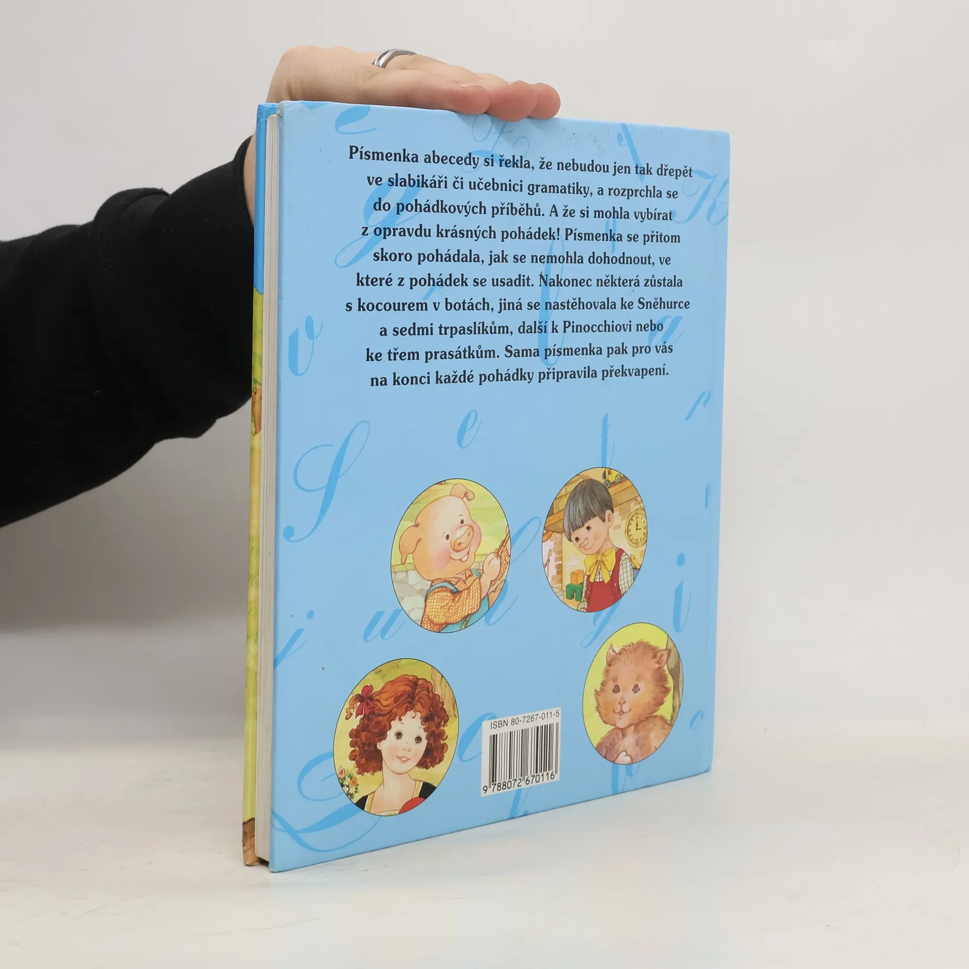 Čtyři známé pohádky (Sněhurka, O třech prasátkách, Kocour v botách, Pinocchio), upravené pro začínající čtenáře. Na jednotlivých stránkách textu jsou vždy tučně vytištěna určitá písmena nebo skupiny hlásek. Děti se tak seznámí postupně téměř s celou abecedou. Za pohádkou jsou připraveny ještě úkoly