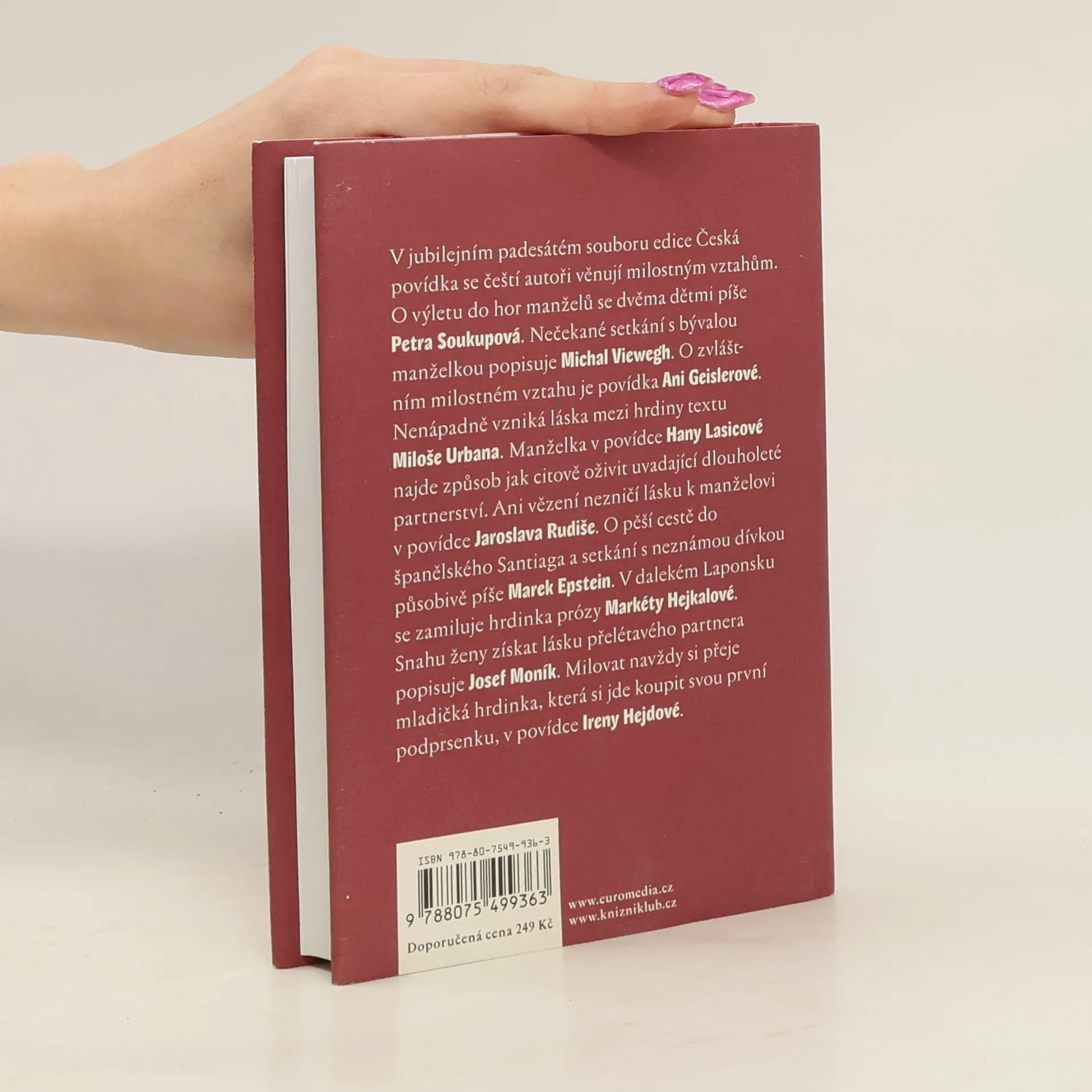 V jubilejním padesátém souboru edice Česká povídka se čeští autoři věnují milostným vztahům. O výletu do hor manželů se dvěma dětmi píše Petra Soukupová. Nečekané setkání s bývalou manželkou popisuje Michal Viewegh. O zvláštním milostném vztahu je povídka Ani Geislerové. Nenápadně vzniká láska mezi hrdiny textu Miloše Urbana. Manželka v povídce Hany Lasicové najde způsob jak citově oživit uvadající dlouholeté partnerství. Ani vězení nezničí lásku k manželovi v povídce Jaroslava Rudiše. O pěší cestě do španělského Santiaga a setkání s neznámou dívkou působivě píše Marek Epstein. V dalekém Laponsku se zamiluje hrdinka prózy Markéty Hejkalové. Snahu ženy získat lásku přelétavého partnera popisuje Josef Moník. Milovat navždy si přeje mladičká hrdinka, která si jde koupit svou první podprsenku, v povídce Ireny Hejdové.