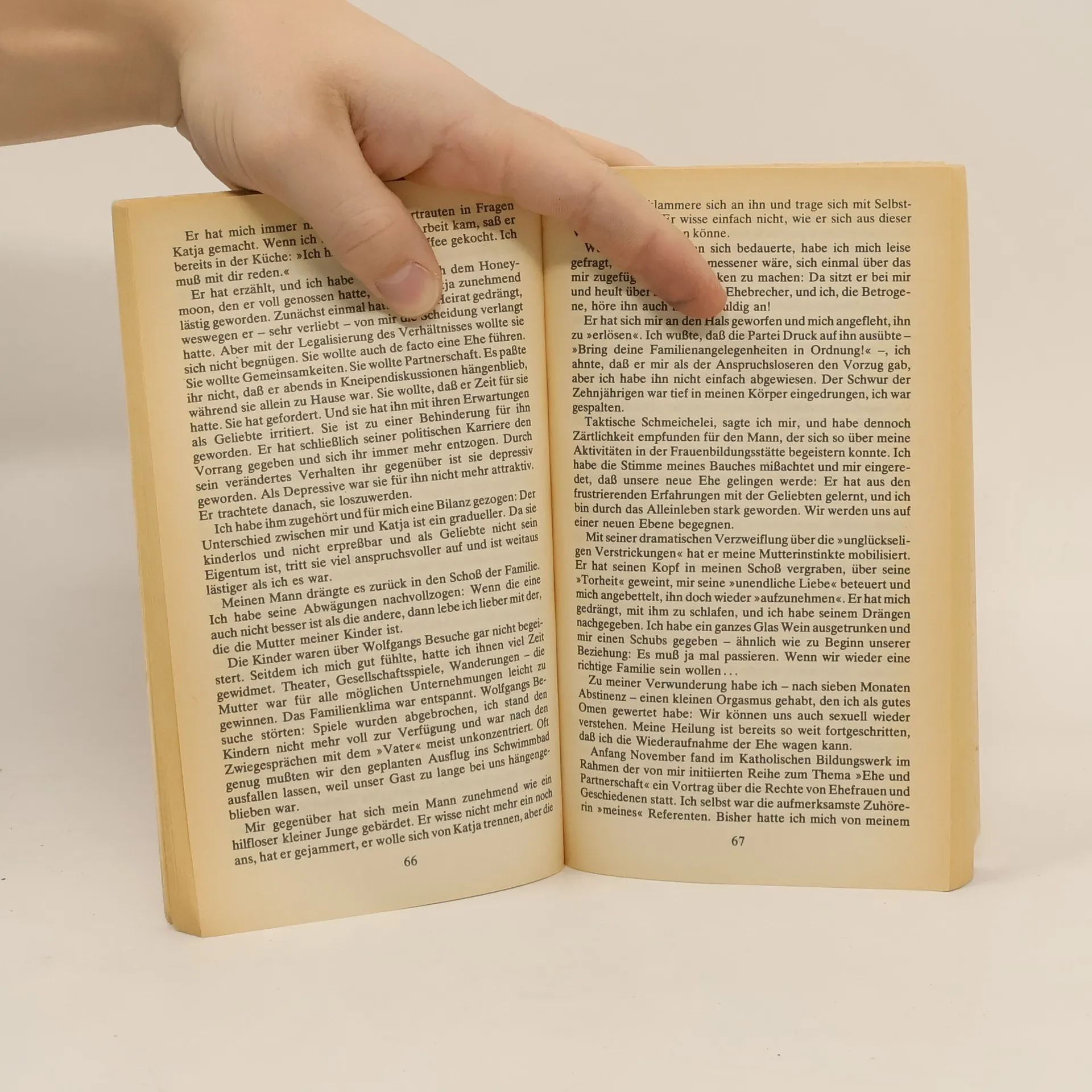 »Ich bin jetzt 42. Vor drei Jahren bin ich ausgestiegen, in meiner Ehe war ich ein Nichts. Mein Mann selbst hat immer wieder gesagt: ›Du bist ein Nichts und Niemand. Du wirst in deinem Leben keine Spur hinterlassen. Alles, was du bist, bist du nur durch mich.‹ -Ich bin ein Nichts geworden. Mit 22 war ich kreativ und eigenständig. Aber dann habe ich geheiratet und bin in einem unheimlich schleichenden Prozeß die Frau geworden von..., das Zubehör von..., das Anhängsel von... Noch heute werde ich als die ›Exgattin des Abgeordneten Professor Dr. Manmann‹ gehandelt. Als wir heirateten, war ich die aktivere. Er ist durch meine Blutspenden zu Kräften gekommen. Er hat Karriere gemacht, ich hatte den Haushalt, und ich hatte die drei Kinder.« Dieses Buch ist die schonungslose offene Lebensbilanz einer jungen Frau, die nach einem langen, schmerzhaften Ablösungsprozeß den Sprung aus der Ehe gewagt hat, um ein neues Leben in Unabhängigkeit zu versuchen. Judith Jannbergs Selbstfindung könnte vielen Frauen Mut machen, ihre Lage zu erkennen und zu handeln.