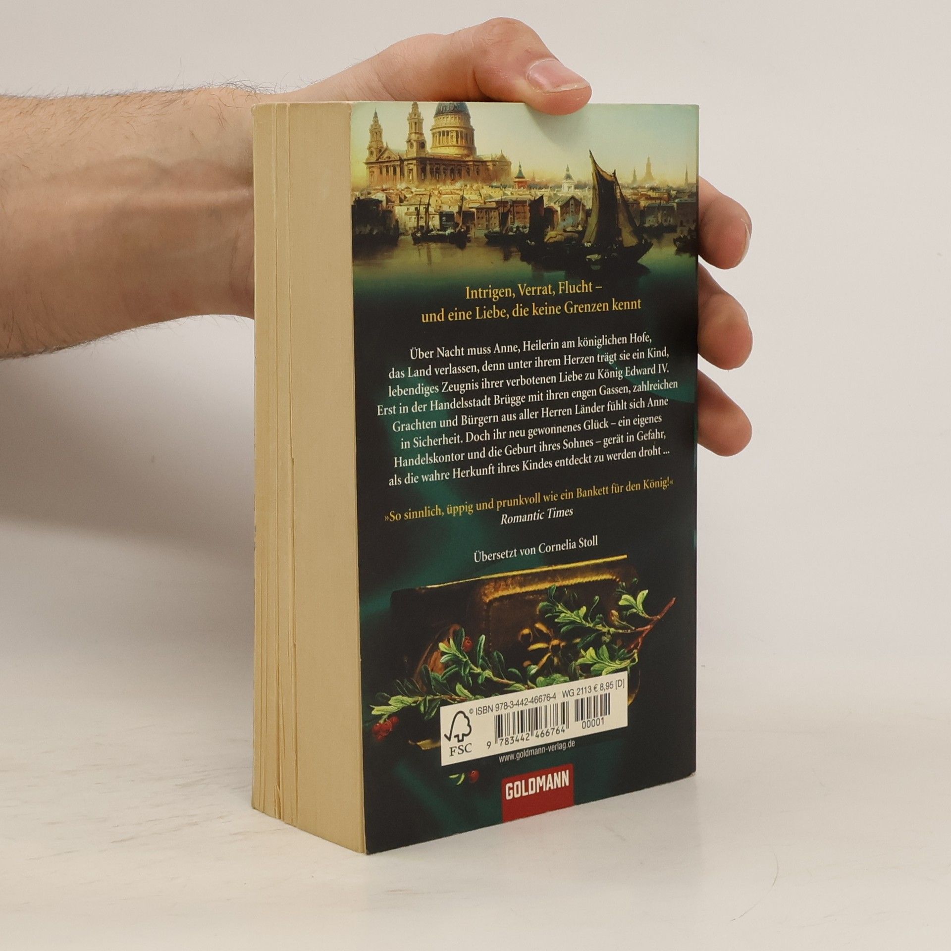 Ein opulenter Roman über Macht, Intrigen und eine Liebe, die keine Grenzen kennt Über Nacht muss Anne, Heilerin am königlichen Hofe, aus England fliehen, denn unter ihrem Herzen trägt sie ein Kind, lebendiges Zeugnis ihrer verbotenen Liebe zu König Edward IV. Erst in der Handelsstadt Brügge mit ihren engen Gassen, zahlreichen Grachten und Bürgern aus aller Herren Länder fühlt sich Anne in Sicherheit. Doch ihr neu gewonnenes Glück – ein eigenes Handelskontor und die Geburt ihres Sohnes – gerät in Gefahr, als die wahre Herkunft ihres Kindes entdeckt zu werden droht …