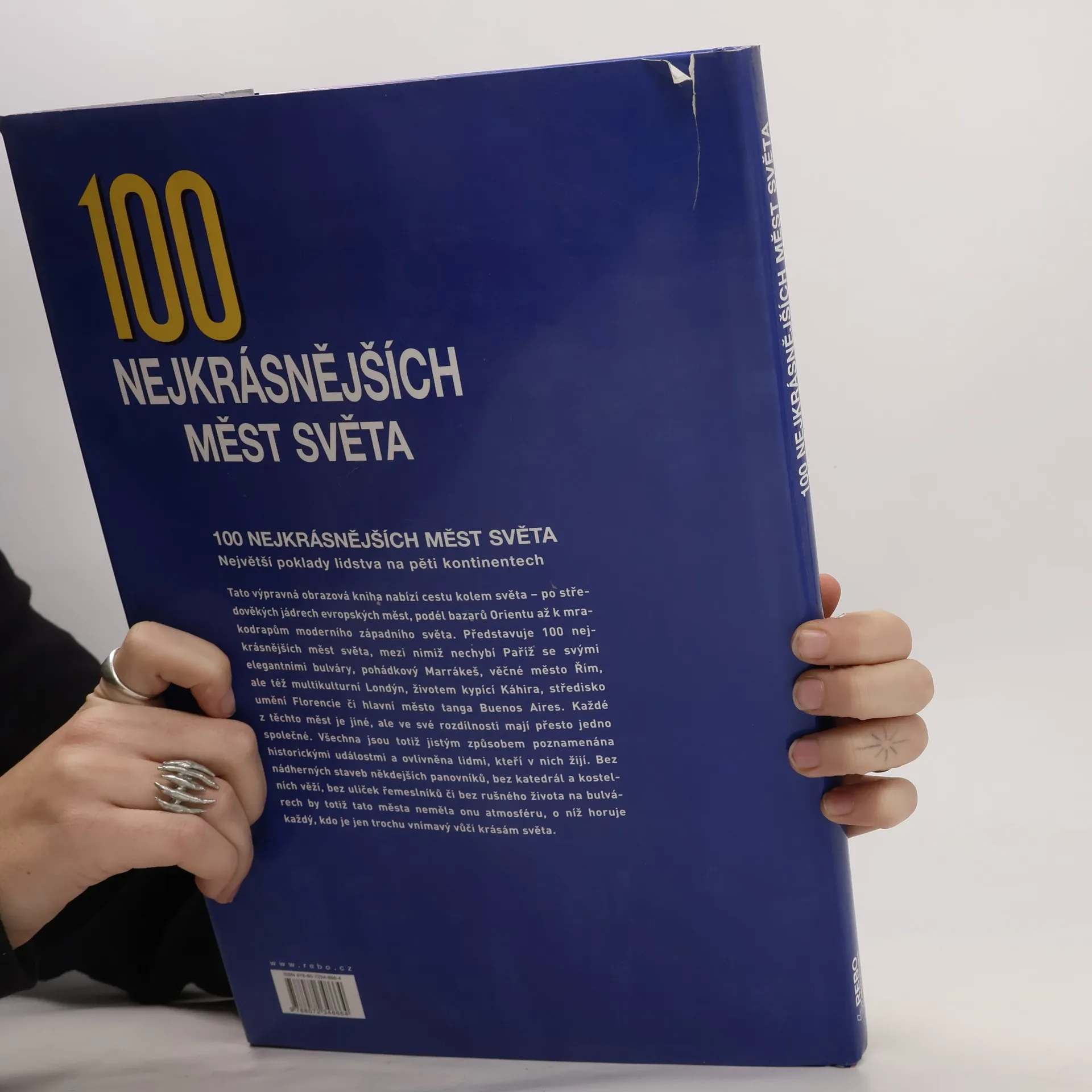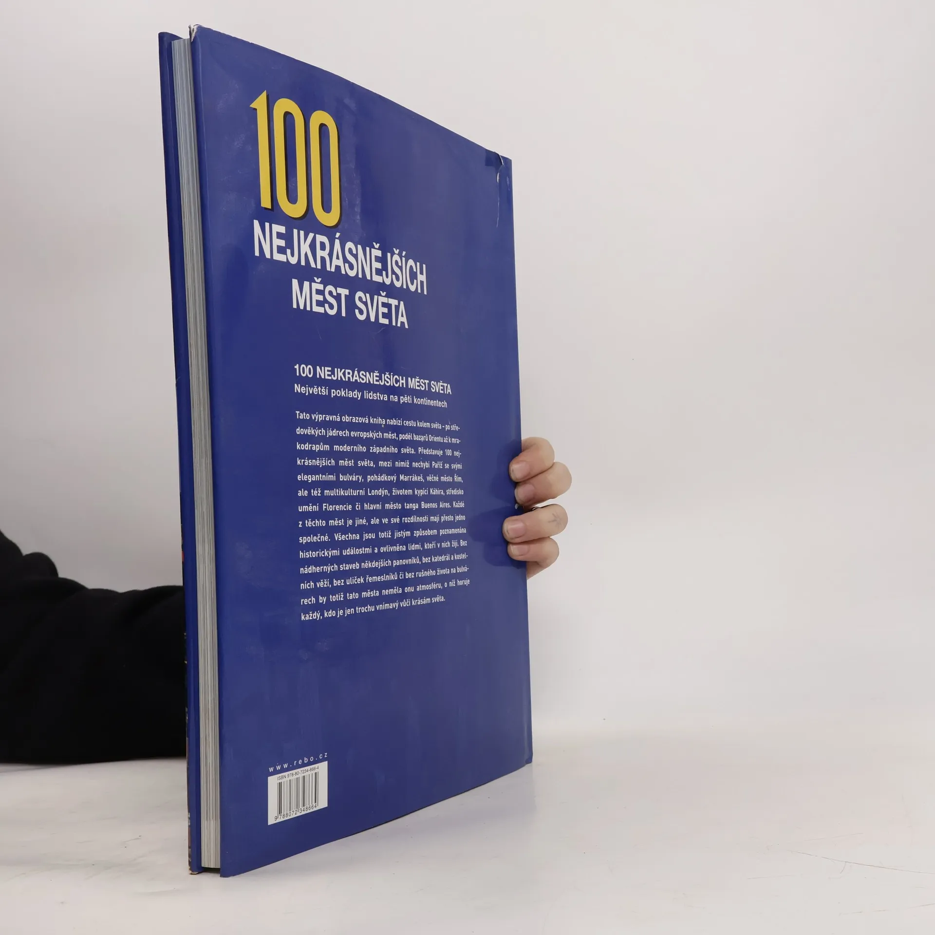 Tato výpravná obrazová kniha nabízí cestu kolem světa - po středověkých jádrech evropských měst, podél bazaru Orientu a k mrakodrapům moderního západního světa. Představuje 100 nejkrásnějších měst světa, mezi nimiž nechybí Paříž se svými elegantními bulváry, pohádkový Marrákeš, věčné město Řím, ale též multikulturní Londýn, životem kypící Káhira, středisko umění Florencie či hlavní město tanga Buenos Aires.