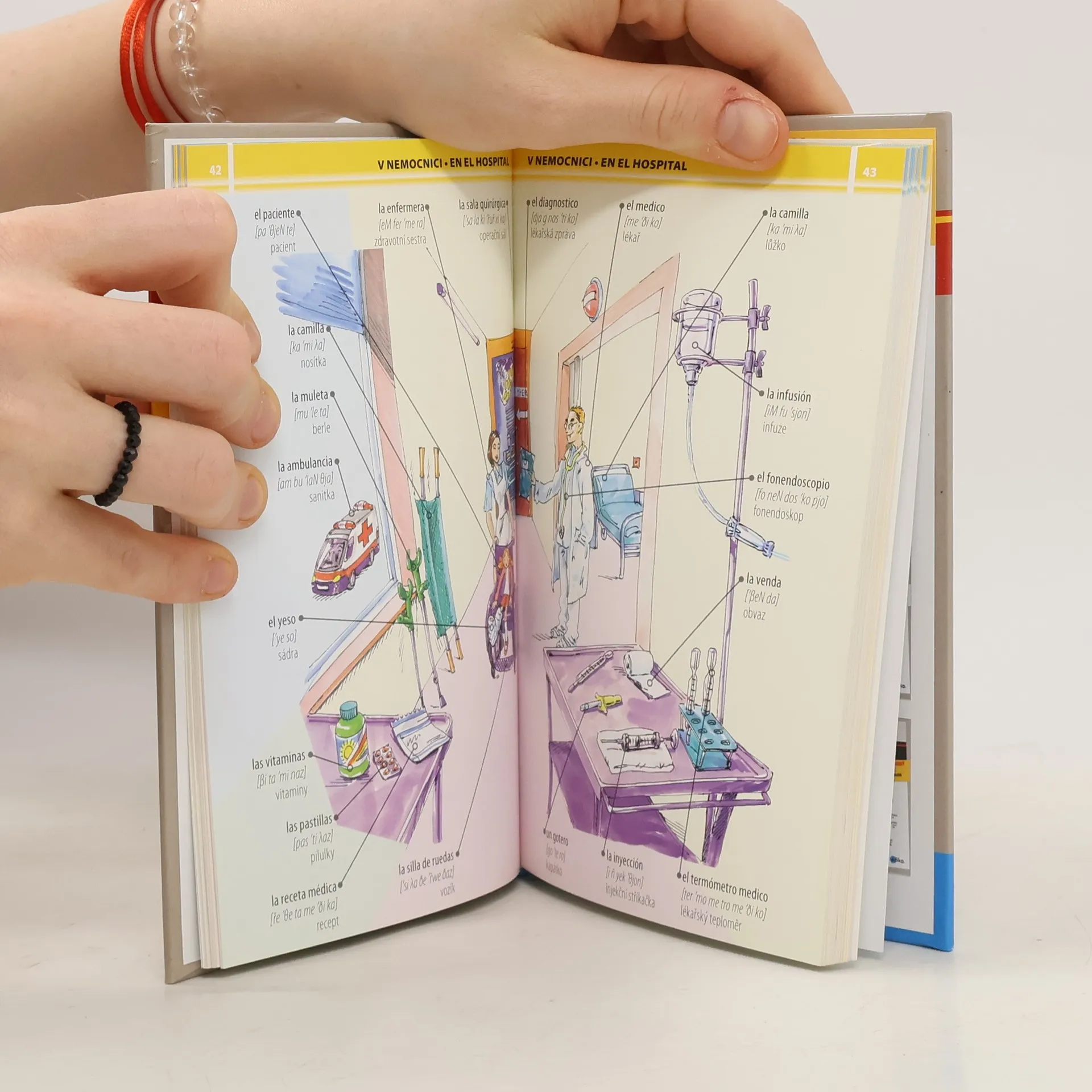 Knížka se stane dobrým pomocníkem při učení a procvičování španělškých slovíček. Na veselých obrázcích, jež znázorňují běžné životní situace, najdete názvy věcí, se kterými se denně setkáváte. Týkají se cestování, zábavy, vybavení bytu, školy, sportu ad. . Každý tematický celek je pak doplněn jednoduchými frázemi ze života.Na konci se nachází souhrnný česko-ruský slovník se všemi slovy z knížky.