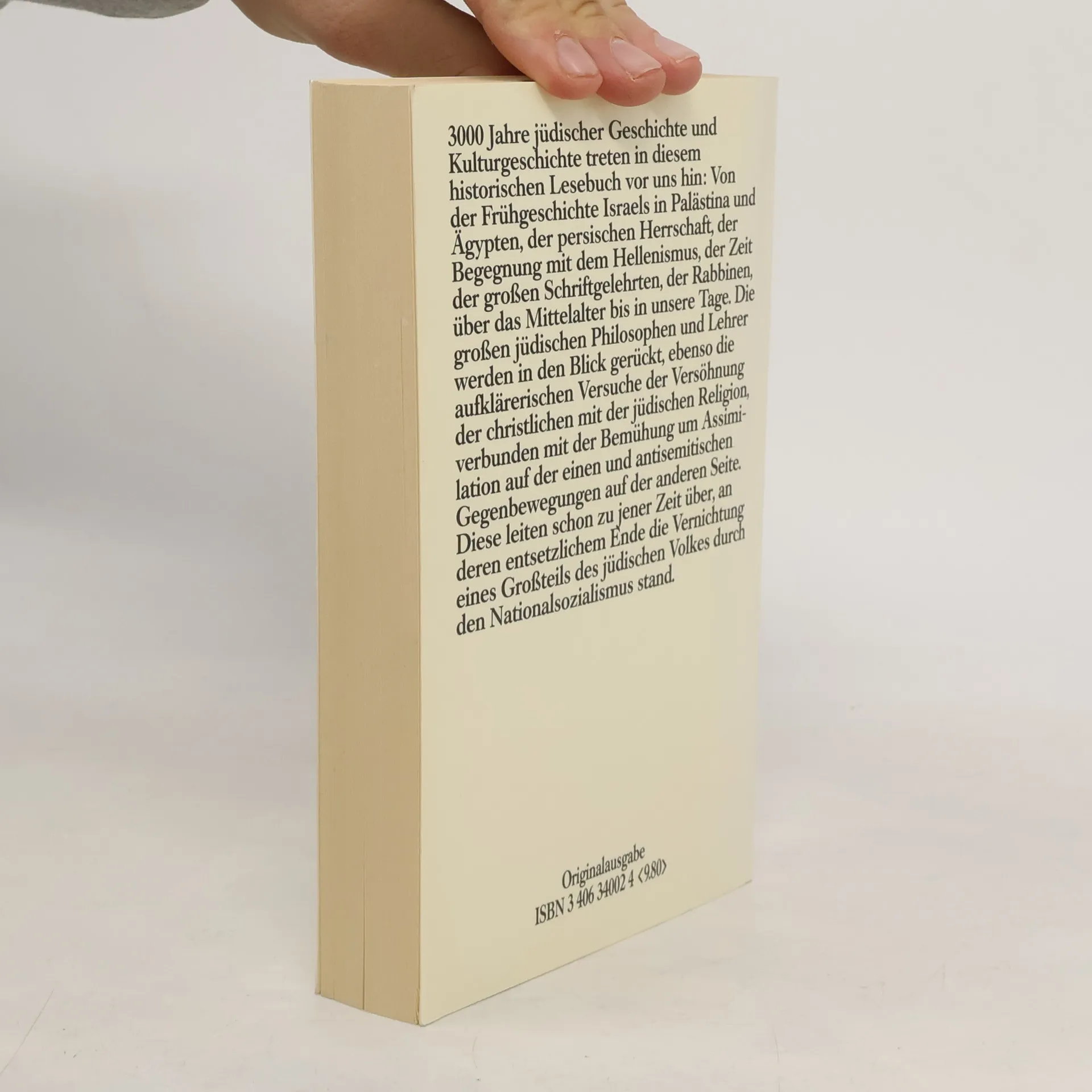 Von den Anfängen bis zur Tempelzerstörung; die Zeit des Zweiten Tempels; die Zeit der Rabbinen; Juden in der Welt des Islam; Juden in der christlichen Welt; zwischen Emanzipation u. Antisemitismus; Holocaust u. Wiedergeburt