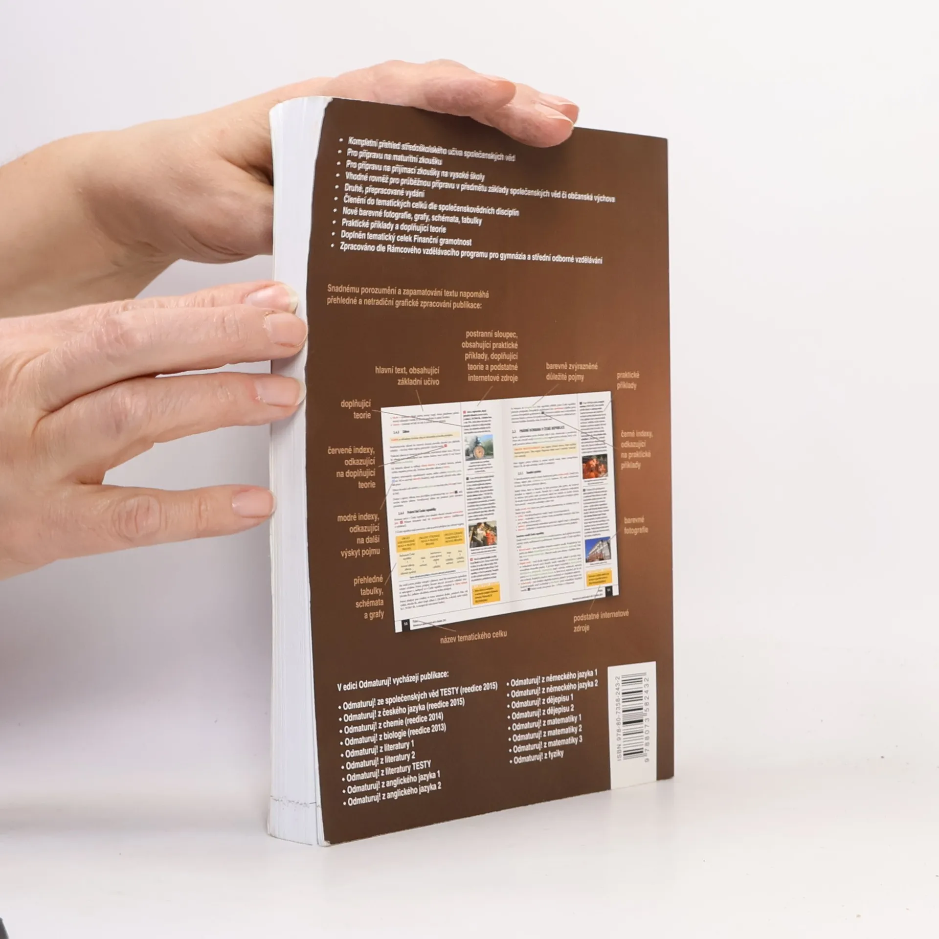 Nakladatelství DIDAKTIS připravuje nové vydání úspěšného titulu Odmaturuj! ze společenských věd z edice Odmaturuj! Edice Odmaturuj! je primárně určena na přípravu k maturitní zkoušce, a to především k maturitní zkoušce v části profilové, taktéž slouží k přípravě na přijímací zkoušky na vysoké školy s humanitním zaměřením. Titul Odmaturuj! ze společenských věd však v novém vydání doporučujeme také pro průběžnou přípravu v předmětu základy společenských věd či občanská výchova na středních školách. I když tituly z edice Odmaturuj! nejsou koncipovány jako učebnice, je do nich zařazeno z hlediska obsahové komplexnosti veškeré středoškolské učivo. Titul je zpracován dle RVP pro gymnázia a RVP pro střední odborné vzdělávání. Nové vydání bude aktualizované podle legislativy účinné k 1. 1. 2015, bude doplněno o nové teoretické poznatky v rámci jednotlivých vědních disciplín a o praktické příklady. Obsah knihy je členěn do následujících tematických celků: Politologie Právo Mezinárodní vztahy Ekonomie Sociologie Psychologie Filozofie Etika Logika a teorie vědy Religionistika Finanční gramotnost Po grafické stránce je důležitou změnou převedení titulu do barevného provedení na bílém podkladu, výklad je doplněn řadou schémat, tabulek a grafů. Nově byl přidán také odkazový aparát v rámci textu a odkazy na podstatné internetové zdroje.