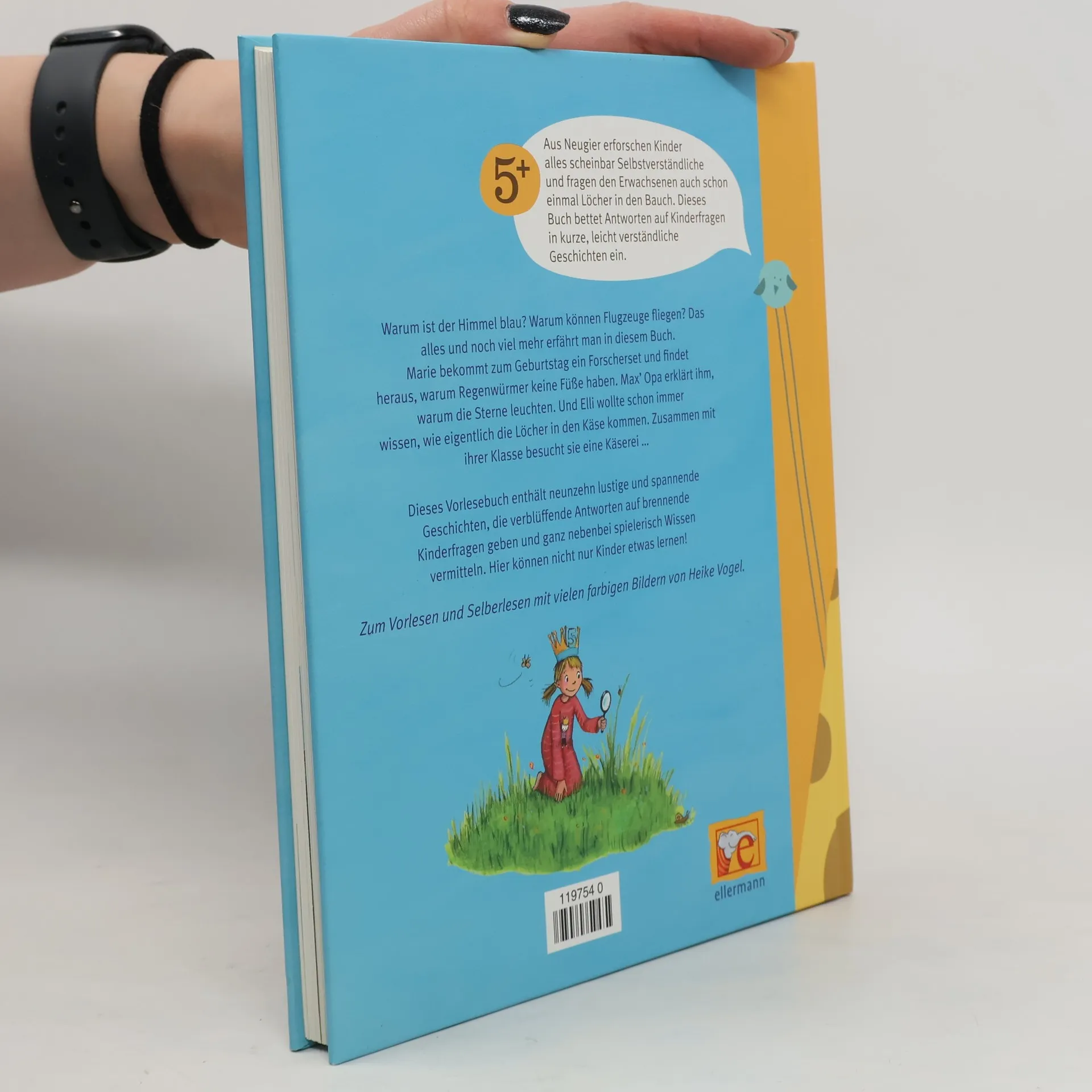 Für alle, die es genau wissen wollen! Hier können nicht nur Kinder etwas lernen! Dieses Vorlesebuch gibt verblüffende Antworten auf brennende Kinderfragen und vermittelt ganz nebenbei spielerisch Wissen. Unter anderem werden folgende Kinderfragen beantwortet: Warum leuchten die Sterne? Wo ist der Wind, wenn er nicht bläst? Wohin geht die Sonne, wenn es Nacht wird? Wie kommt das Salz ins Meer? Wie kommen die Löcher in den Käse? Können Fische ertrinken? Warum bekommt der Specht beim Klopfen kein Kopfweh? Warum fallen Milchzähne aus? Warum haben manche Menschen dunkle Haut?