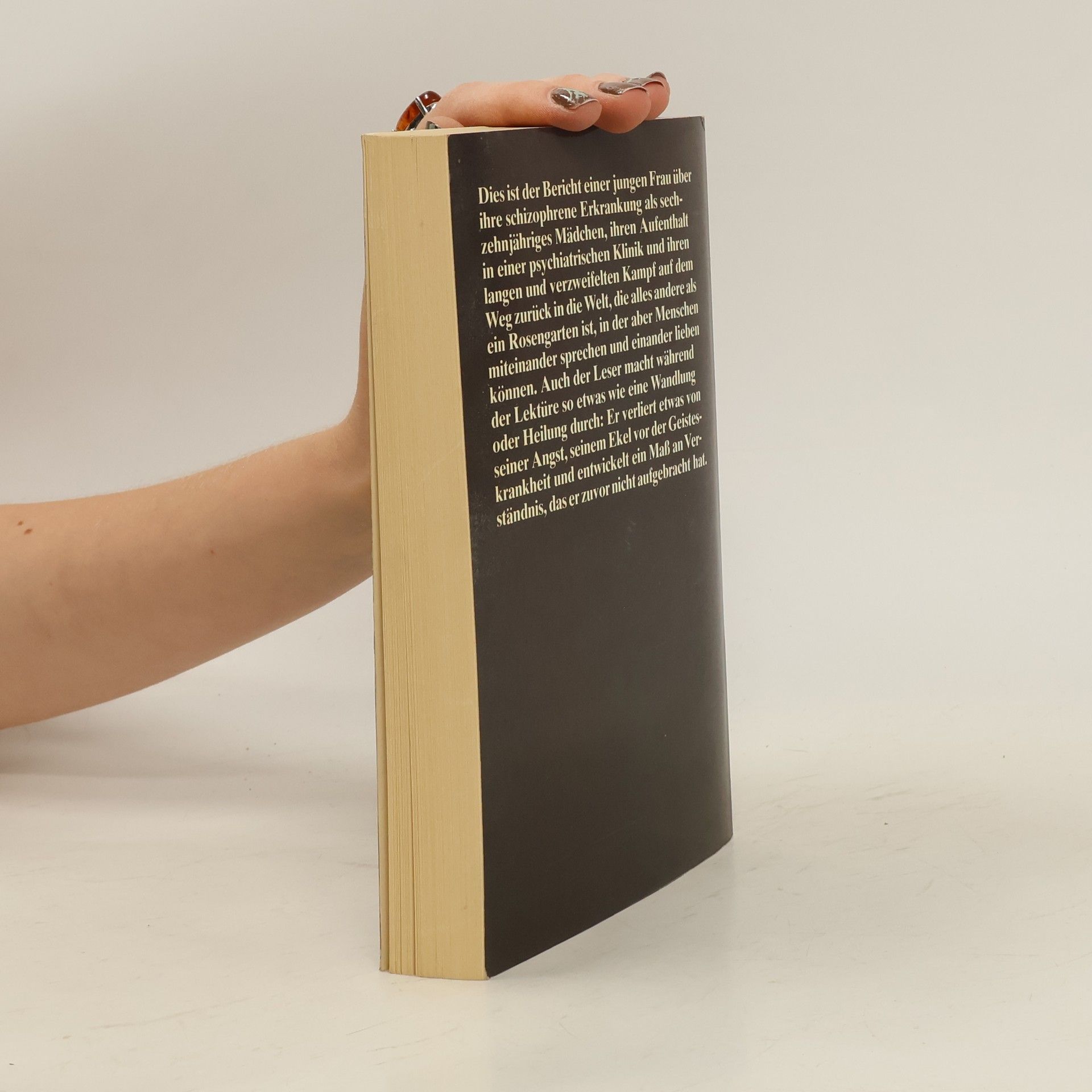 Dieses Buch erzählt die Geschichte der sechzehnjährigen Deborah Blau, die mit der Diagnose Schizophrenie in eine psychiatrische Klinik eingewiesen und nach mühsamer Behandlung und mancherlei Rückschlägen geheilt wird. Es ist die Schilderung einer Krankheit, mit der sich die Autorin als ein Stück eigener Geschichte identifiziert.