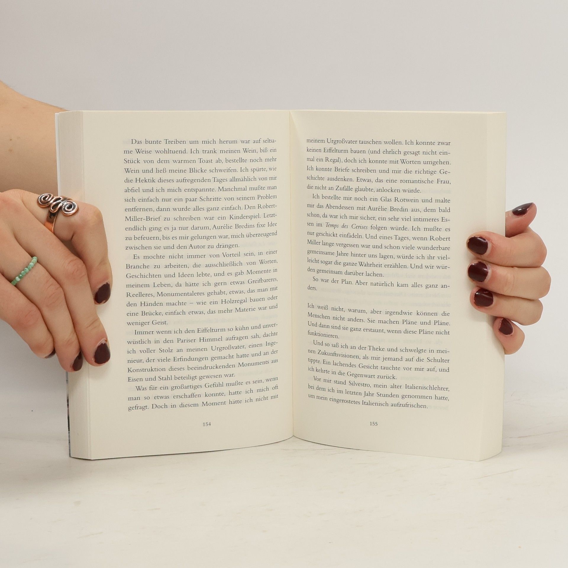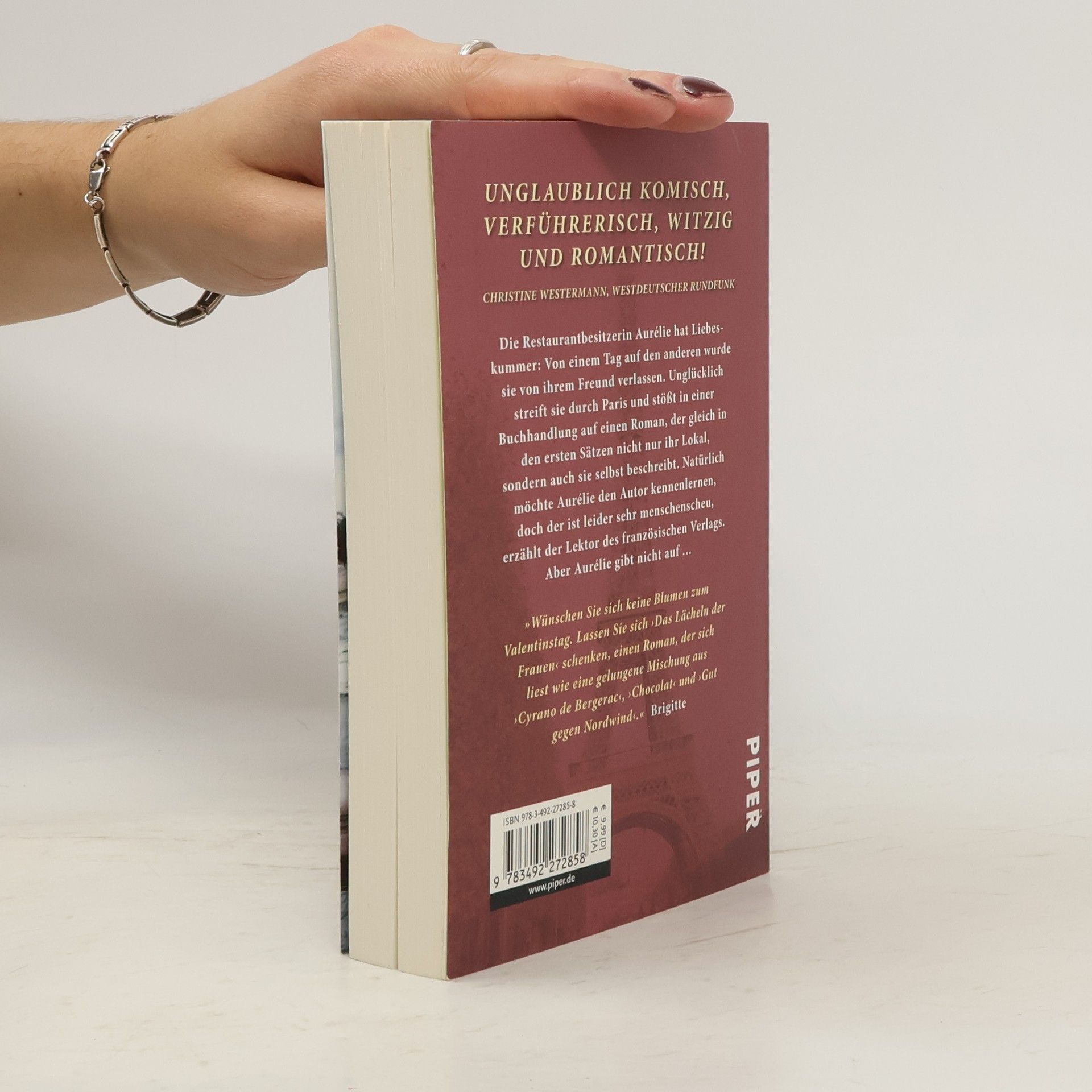 Die junge Restaurantbesitzerin Aurélie hat Liebeskummer: Von einem Tag auf den anderen wurde sie von ihrem Freund verlassen. Unglücklich streift sie durch Paris und stößt in einer kleinen Buchhandlung auf einen Roman, der gleich in den ersten Sätzen nicht nur ihr Lokal, sondern auch sie selbst beschreibt. Begeistert von der Lektüre, möchte Aurélie den Autor des Buchs kennenlernen, doch der ist leider sehr menschenscheu, erfährt sie vom Lektor des französischen Verlags. Aber Aurélie gibt nicht auf …