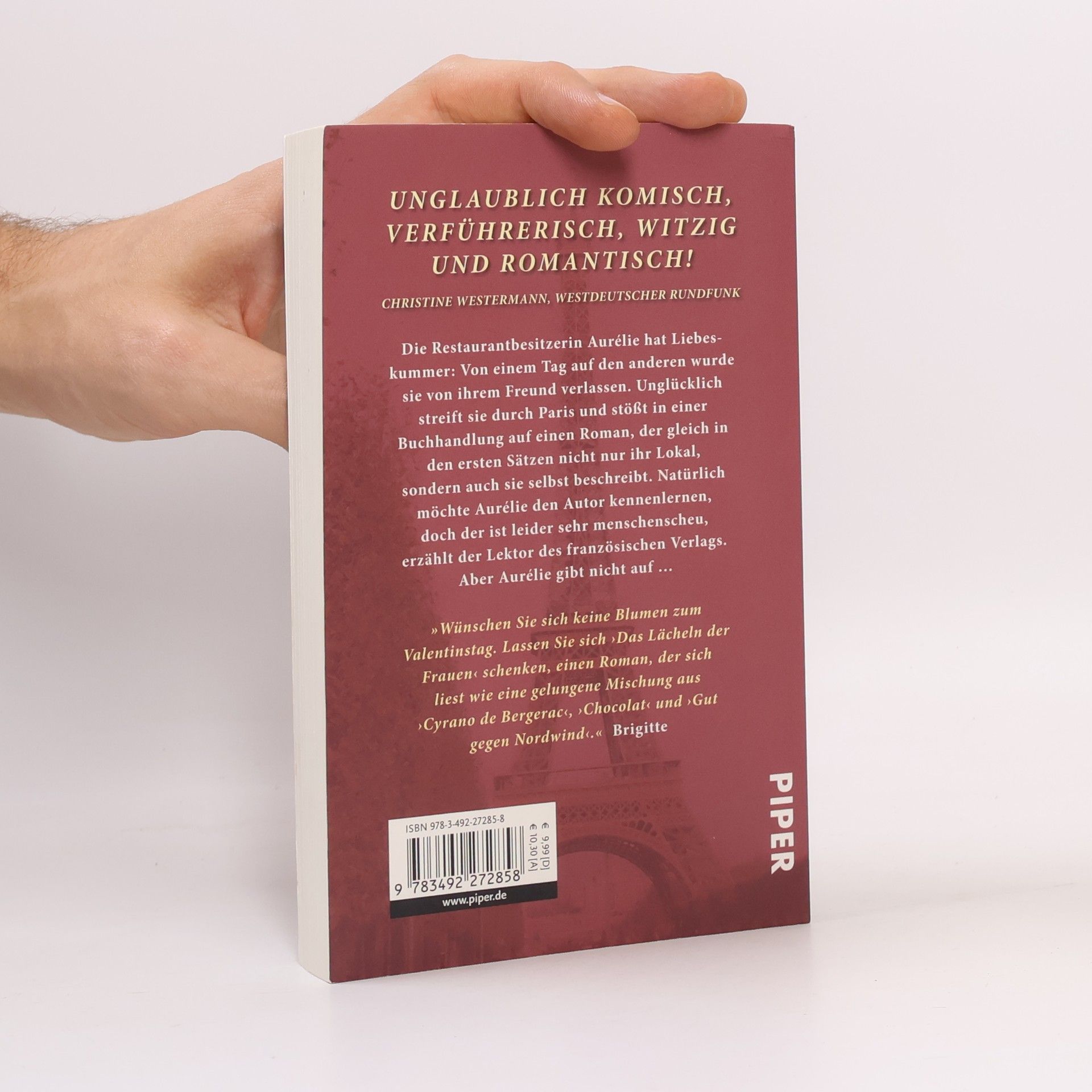 Die junge Restaurantbesitzerin Aurélie hat Liebeskummer: Von einem Tag auf den anderen wurde sie von ihrem Freund verlassen. Unglücklich streift sie durch Paris und stößt in einer kleinen Buchhandlung auf einen Roman, der gleich in den ersten Sätzen nicht nur ihr Lokal, sondern auch sie selbst beschreibt. Begeistert von der Lektüre, möchte Aurélie den Autor des Buchs kennenlernen, doch der ist leider sehr menschenscheu, erfährt sie vom Lektor des französischen Verlags. Aber Aurélie gibt nicht auf …