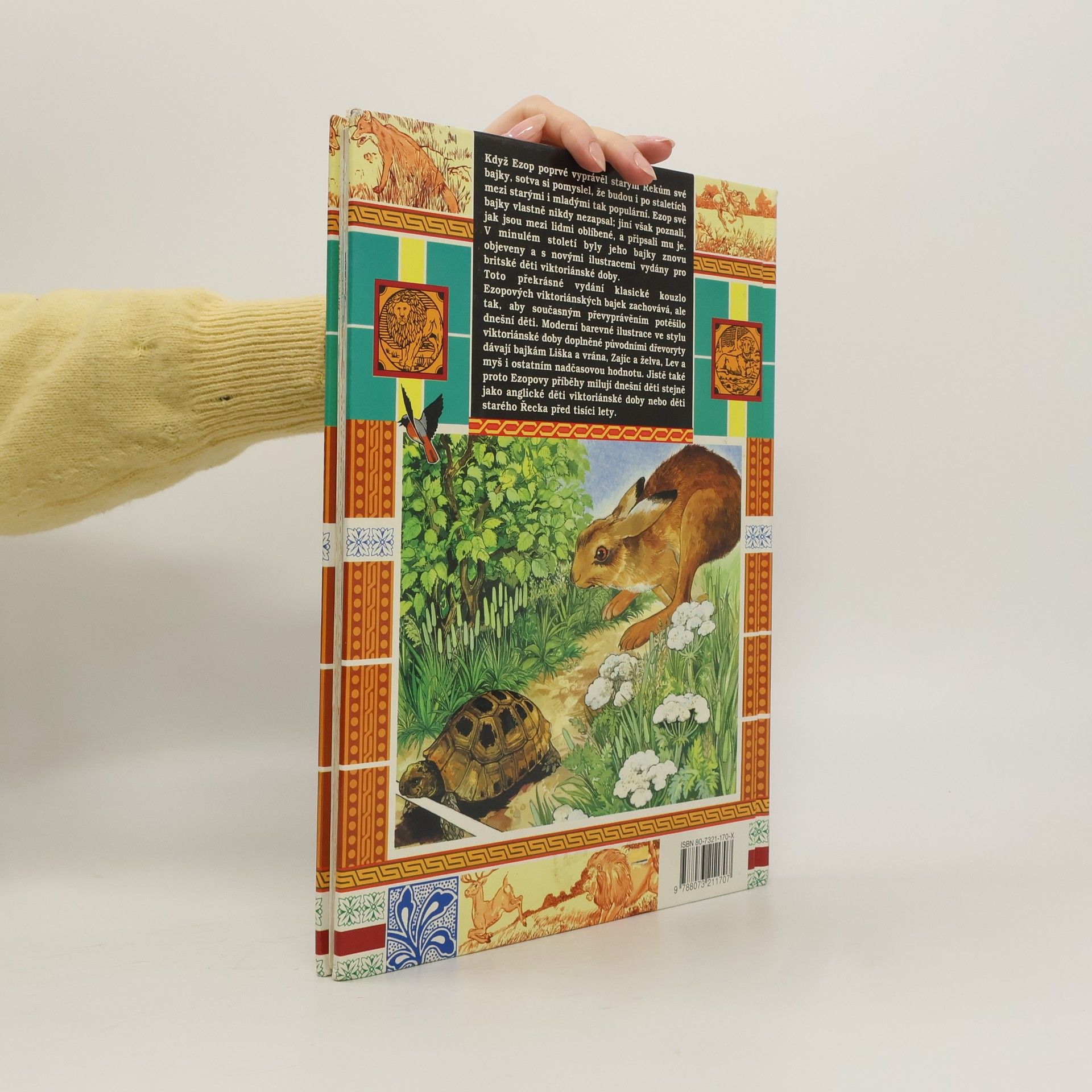 Každý z nás si vzpomene alespoň na jednu z klasických Ezopových bajek, ve kterých se zvířata chovají jako lidé a nastavují tak zrcadlo našim mnohdy nepěkným vlastnostem. Jejich soubor, ve kterém nechybějí příběhy o lišce a vráně, zajíci a želvě či lvu a myši, je přizpůsoben dětskému čtenáři a doprovází jej řada půvabných ilustrací.