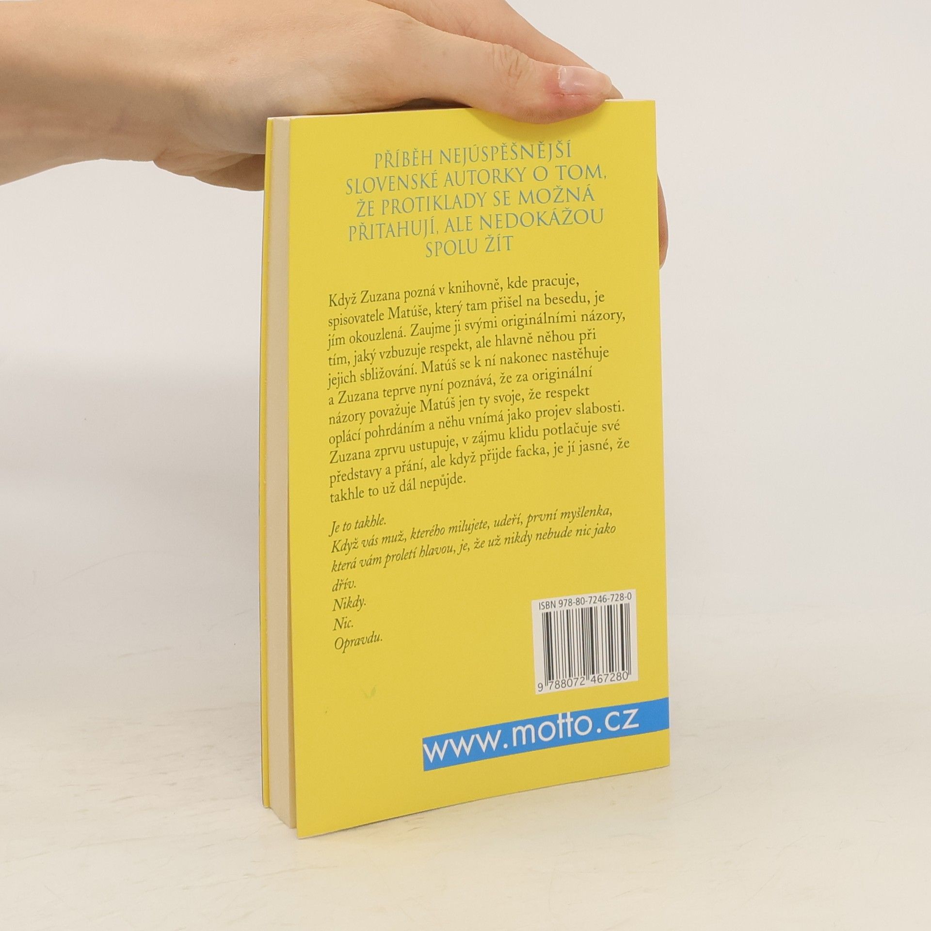 Když Zuzana pozná v knihovně, kde pracuje, spisovatele Matúše, který tam přišel na besedu, je jím okouzlená. Zaujme ji svými originálními názory, tím, jaký vzbuzuje respekt, ale hlavně něhou při jejich sbližování. Matúš se k ní nakonec nastěhuje a Zuzana teprve nyní poznává, že za originální názory považuje Matúš jen ty svoje, že respekt oplácí pohrdáním a něhu vnímá jako projev slabosti. Zuzana zprvu ustupuje, potlačuje své představy a přání, ale když přijde facka, je jí jasné, že takhle to dál nepůjde.