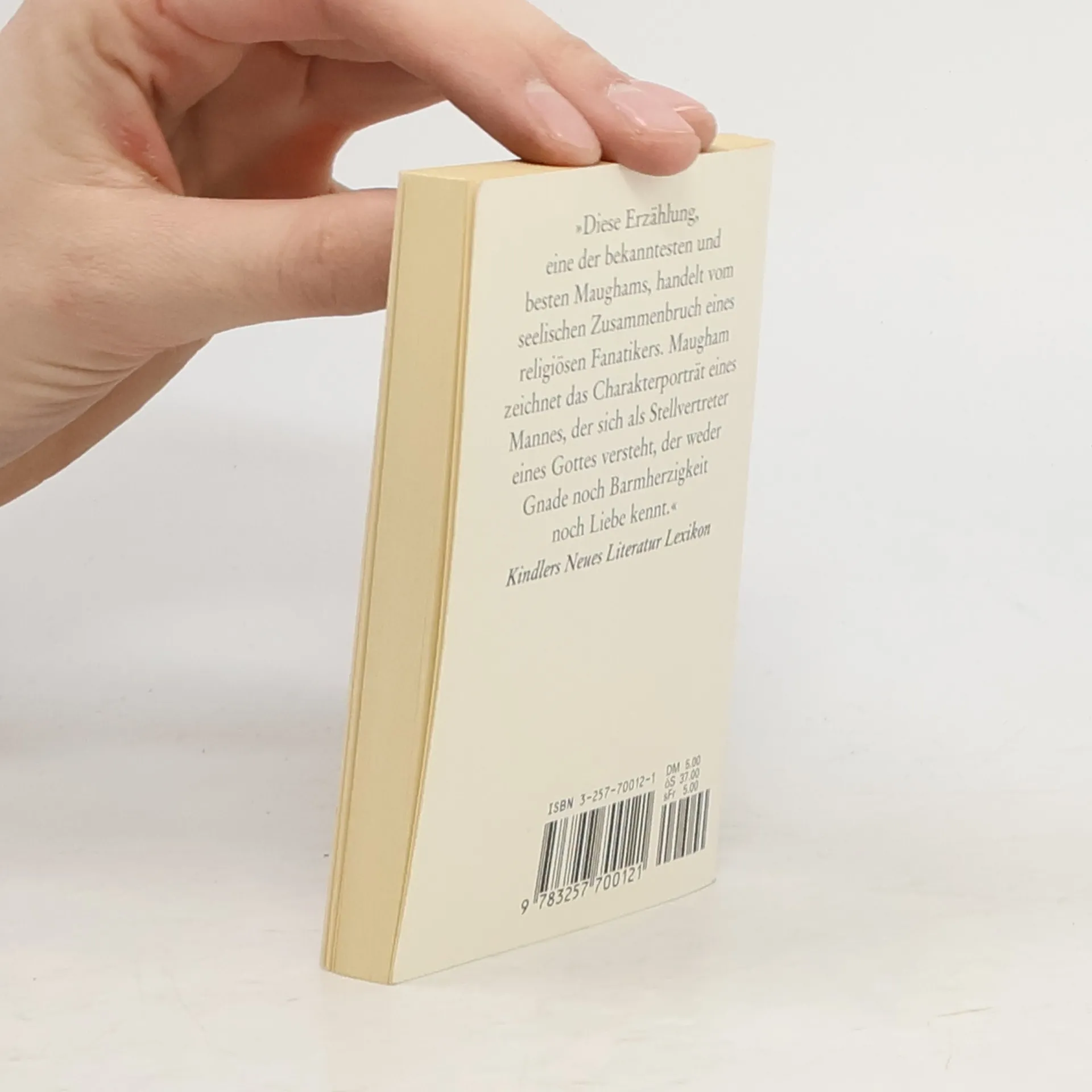 "Diese Erzählung, eine der bekanntesten Maughams, handelt vom seelischen Zusammenbruch eines religiösen Fanatikers. Maugham zeichnet das Charakterportrait eines Mannes, der sich als Stellvertreter Gottes versteht, der weder Gnade noch Barmherzigkeit noch Liebe kennt" Kindlers neues Literatur Lexikon