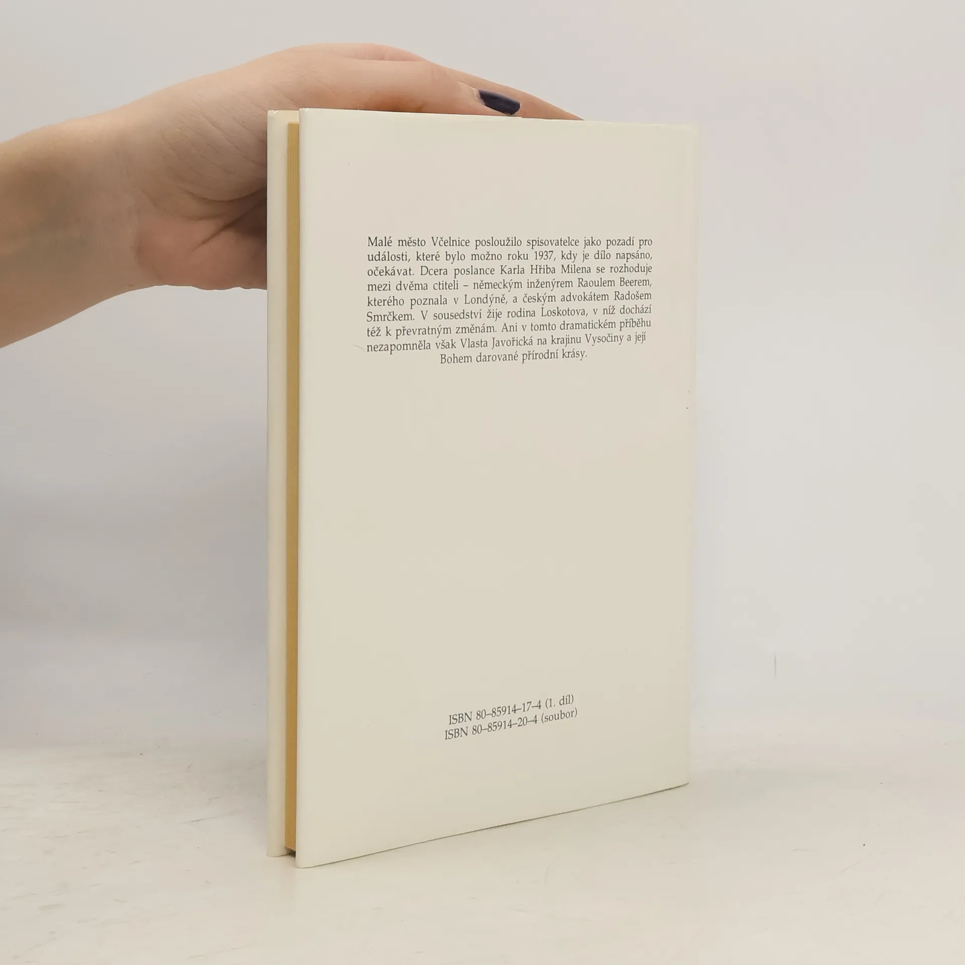 Malé město Včelnice posloužilo spisovatelce jako pozadí pro události, které bylo možno roku 1937, kdy je dílo napsáno, očekávat. Dcera poslance Karla Hřiba Milena se rozhoduje mezi dvěma ctiteli - německým inženýrem Raoulem Beerem, kterého poznala v Londýně, a českým advokátem Radošem Smrčkem. V sousedství žije rodina Loskotova, v níž dochází též k převratným změnám. Ani v tomto dramatickém příběhu nezapomněla však Vlasta Javořická na krajinu Vysočiny a její Bohem darované přírodní krásy.