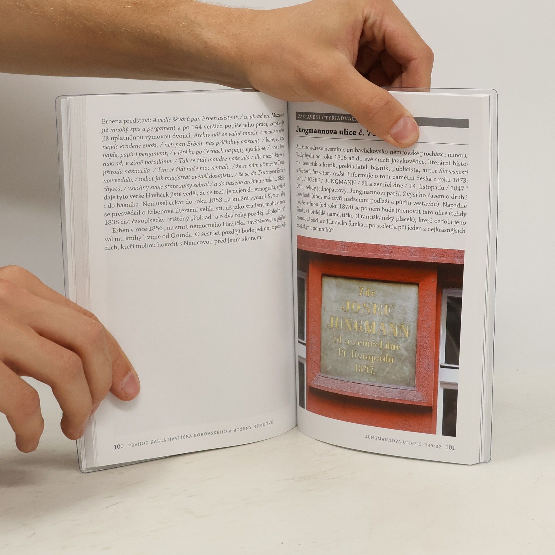 Literární bedekr nás zavádí na místa spojená se životem a dílem dvou velkých postav českého národního obrození, dvou vrstevníků a přátel, Karla Havlíčka a Boženy Němcové. Bohatě obrazově vybavená příručka věnuje pozornost pražským lokalitám, kde Havlíček a Němcová bydleli a pracovali (oba víckrát změnili adresu), na Žofíně si vzpomeneme, že tam mladá Němcová v roce 1843 okouzlila na českém plese intelektuální elitu, nemineme místa, kde bývaly redakce Pražských novin a Národních novin, jejichž redaktorem byl Havlíček, vstoupíme do salonu Františka Palackého, kam oba zacházeli, vydáme se také po stopách Josefa Jungmanna, Karla Jaromíra Erbena či Karoliny Světlé, zastavíme se před domy, kde Havlíček a Němcová zemřeli, na Olšanech a Vyšehradě postojíme u jejich hrobů.
