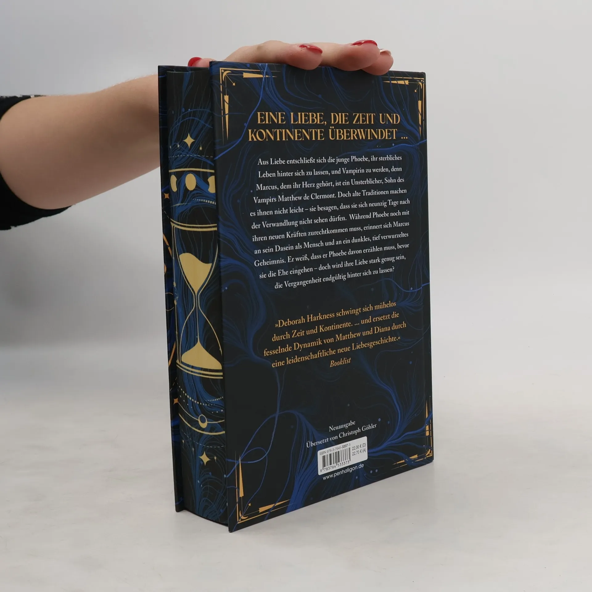 Eine Liebe für die Ewigkeit: Nach Diana und Matthew werden nun Marcus und Phoebe die Herzen der Leser*innen im Sturm erobern. Aus Liebe entschließt sich die junge Phoebe, ihr sterbliches Leben hinter sich zu lassen, und Vampirin zu werden, denn Marcus, dem ihr Herz gehört, ist ein Unsterblicher. Doch alte Traditionen machen es ihnen nicht leicht – sie besagen, dass sie sich neunzig Tage nach der Verwandlung nicht sehen dürfen. Während Phoebe noch mit ihren neuen Kräften zurechtkommen muss, erinnert sich Marcus an sein Dasein als Mensch und an ein dunkles, tief verwurzeltes Geheimnis. Er weiß, dass er Phoebe davon erzählen muss, bevor sie die Ehe eingehen – doch wird ihre Liebe stark genug sein, die Vergangenheit endgültig hinter sich zu lassen? ***Der gestaltete Buchschnitt ist auf eine limitierte Auflage begrenzt.*** Band 4 der opulenten Saga, aus der Sicht des Vampirs Marcus und seiner geliebten Sterblichen Phoebe – fesselnd und voller Leidenschaft. Alle Bände der Reihe: A Discovery of Witches – Die Seelen der Nacht. Shadow of Night – Wo die Nacht beginnt. The Book of Life – Das Buch der Nacht. Time’s Convert – Bis ans Ende der Ewigkeit.