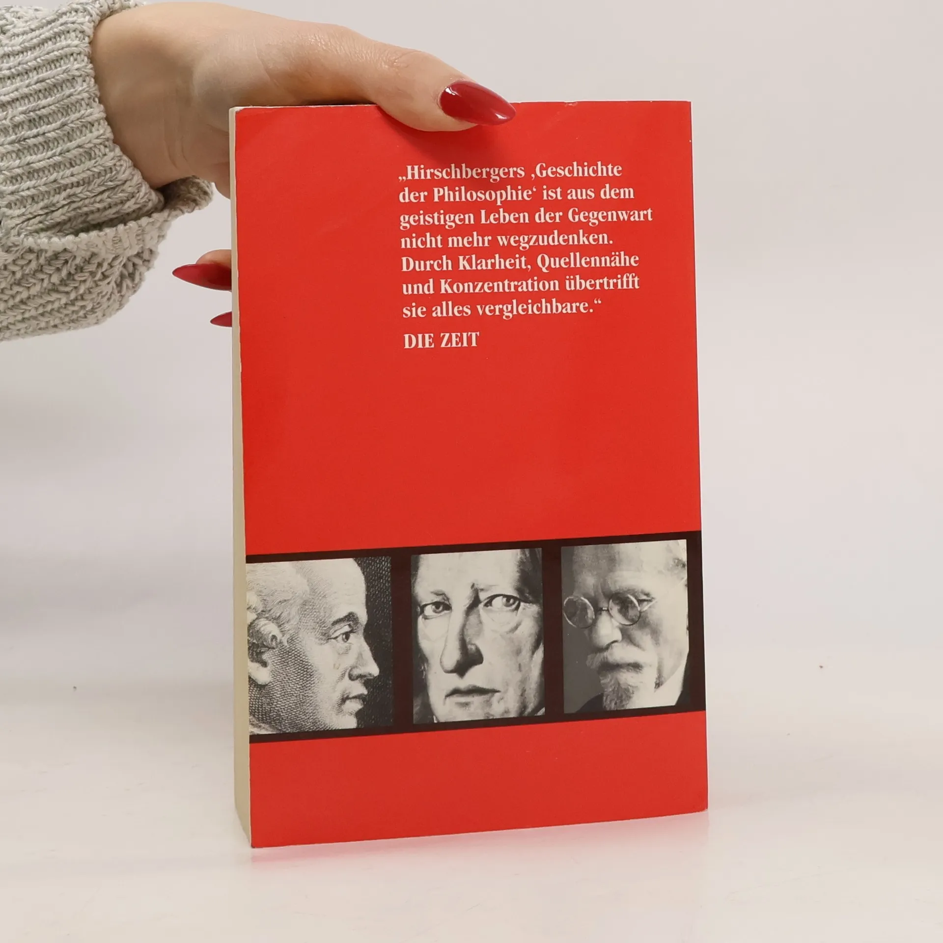 Ein Standardwerk, dass aus dem geistigen Leben nicht mehr wegzudenken ist: "In allen Bibliotheken der Welt stehen seine in zahlreiche Sprachen übersetzten Werke. Unzählige Studenten haben mit ihnen gearbeitet. Die hohen Auflagenzahlen beweisen, dass es sich um Standardwerke handelt. Hirschbergers monumentale..."Geschichte der Philosophie"ist aus dem geistigen Leben nicht mehr wegzudenken. Durch Klarheit, Quellennähe und Konzentration auf das Wesentliche übertrifft sie alles Vergleichbare..."(Die Zeit).