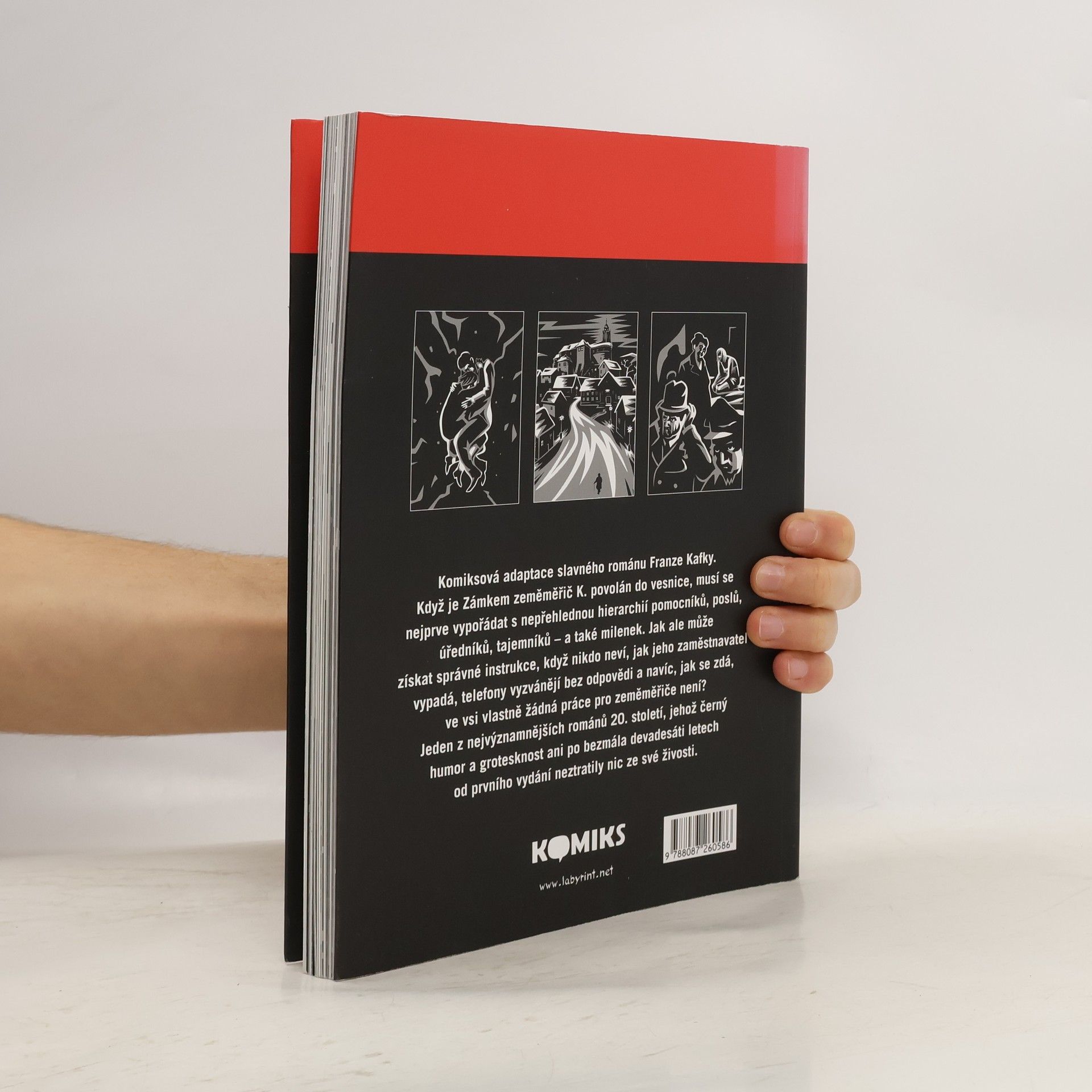 Komiksová adaptace slavného románu. Když je zeměměřič K. zámkem povolán do vesnice, musí se nejprve vypořádat s nepřehlednou hierarchií pomocníků, poslů, úředníků, tajemníků - a také milenek. Jak ale může získat správné instrukce, když nikdo neví, jak jeho zaměstnavatel vypadá, telefony vyzvánějí bez odpovědi a navíc, jak se zdá, ve vesnici vlastně žádná práce pro zeměměřiče není? Jeden z nejvýznamnějších románů 20. století, jehož černý humor a grotesknost ani po bezmála devadesáti letech od prvního vydání neztratily nic ze své živosti.