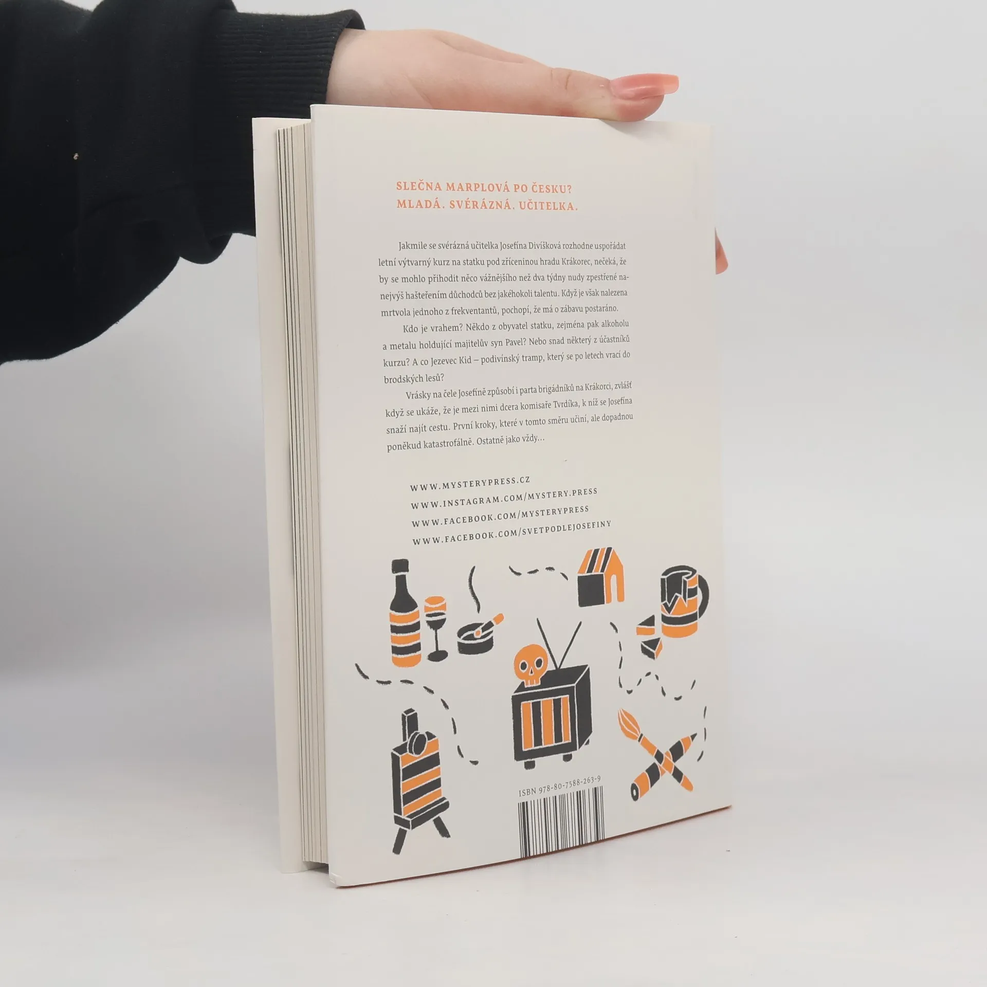 Jakmile se svérázná učitelka Josefína Divíšková rozhodne uspořádat letní výtvarný kurz na statku pod zříceninou hradu Krákorec, nečeká, že by se mohlo přihodit něco vážnějšího než dva týdny nudy zpestřené nanejvýš hašteřením důchodců bez jakéhokoli talentu. Když je však nalezena mrtvola jednoho z frekventantů, pochopí, že má o zábavu postaráno. Kdo je vrahem? Někdo z obyvatel statku, zejména pak alkoholu a metalu holdující majitelův syn Pavel? Nebo snad některý z účastníků kurzu? A co Jezevec Kid – podivínský tramp, který se po letech vrací do brodských lesů? Vrásky na čele Josefíně způsobí i parta brigádníků na Krákorci, zvlášť když se ukáže, že je mezi nimi dcera komisaře Tvrdíka, k níž se Josefína snaží najít cestu. První kroky, které v tomto směru učiní, ale dopadnou poněkud katastrofálně. Ostatně jako vždy…
