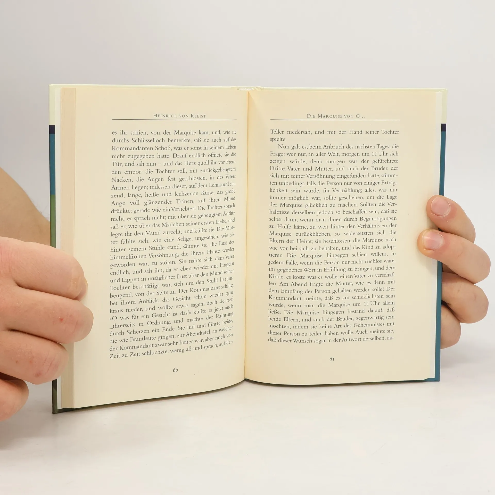 Die spektakuläre Geschichte der jungen Marquise von O... liest sich so spannend wie ein Kriminalroman, weil Kleist das Problem mit einem Paukenschlag enthüllt und dem Leser die Hintergründe erst langsam entdeckt: Eine 'Dame von vortrefflichem Ruf' ist schwanger, ohne zu wissen von wem. Über ein Zeitungsinserat bittet sie den Vater, sich zu melden, und verspricht ihm die Ehe. Ihr Mut und ihre Selbstständigkeit gegen die Konventionen der Zeit sind ein großartiges Beispiel früher Emanzipation. – Außerdem enthält dieser Band die berühmten Erzählungen 'Das Erdbeben in Chili' und 'Die Verlobung in St. Domingo'.
