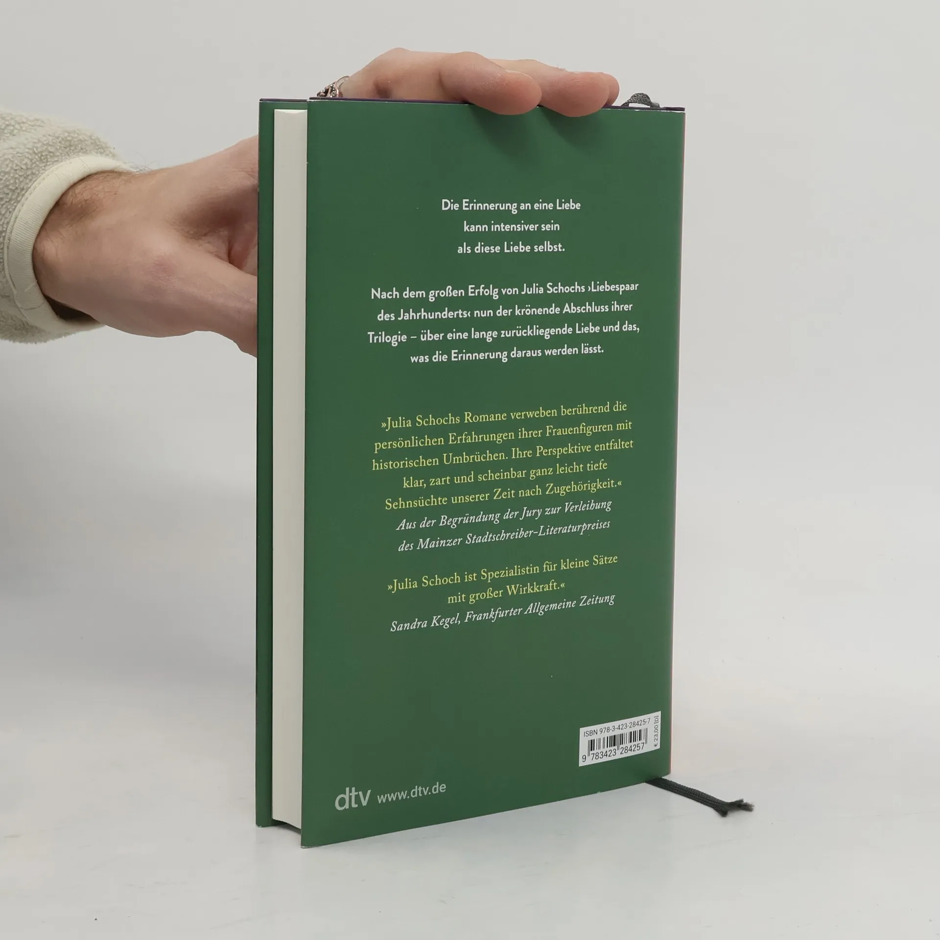 Über eine lang zurückliegende Liebe und das, was die Erinnerung daraus werden lässt Die Erinnerung an eine Liebe kann intensiver sein als diese Liebe selbst Eine Frau lernt fern von zu Hause einen Mann kennen, Katalane und Schriftsteller, und hat mit ihm eine Affäre. Diese Liebe bringt alles ins Wanken – nicht nur die Beziehung zu ihrem Ehemann, auch ihre Sicht auf die Dinge, ihre Arbeit. Was sie erlebt, lässt eine Entscheidung in ihr reifen, die mit Risiken verbunden ist: ganz bei sich zu sein und künftig als Schriftstellerin zu leben. Aber kann jemand, der ganz bei sich ist, noch bei anderen sein? Bei einem Ehemann, bei Kindern? Jahre später steht sie erneut an einem Kipppunkt ihres Lebens und begegnet dem Katalanen wieder: Ein Bogen schließt sich zwischen Vergangenheit und Jetzt. Julia Schoch krönt mit diesem Roman einer folgenreichen Begegnung ihre außergewöhnliche Trilogie. Nach dem großen Erfolg von Julia Schochs Bestsellerroman ›Das Liebespaar des Jahrhunderts‹ nun der krönende Abschluss ihrer Trilogie. »Was ich in der Trilogie erzähle? Dass wir unterschiedliche Rollen im Leben haben und oft nicht wissen, was wir für andere sind. In den drei Büchern möchte ich Gerechtigkeit walten lassen. Ein Wunschtraum, vielleicht. Aber ein schöner.« Julia Schoch