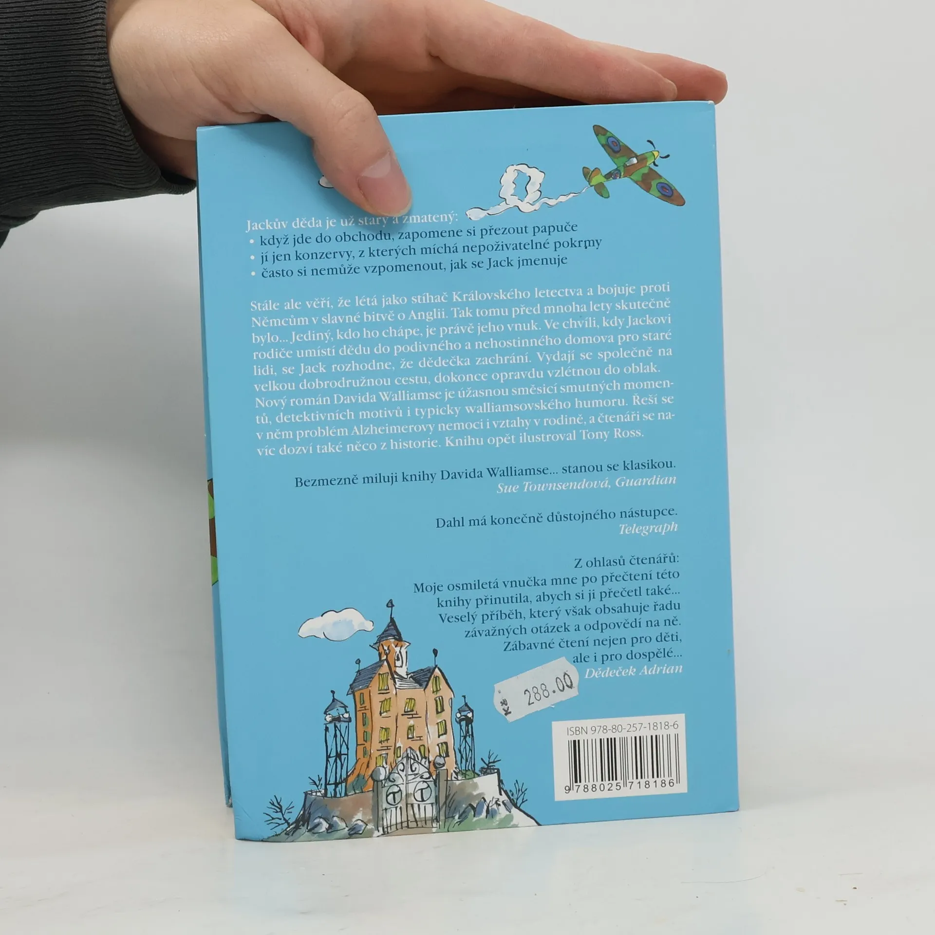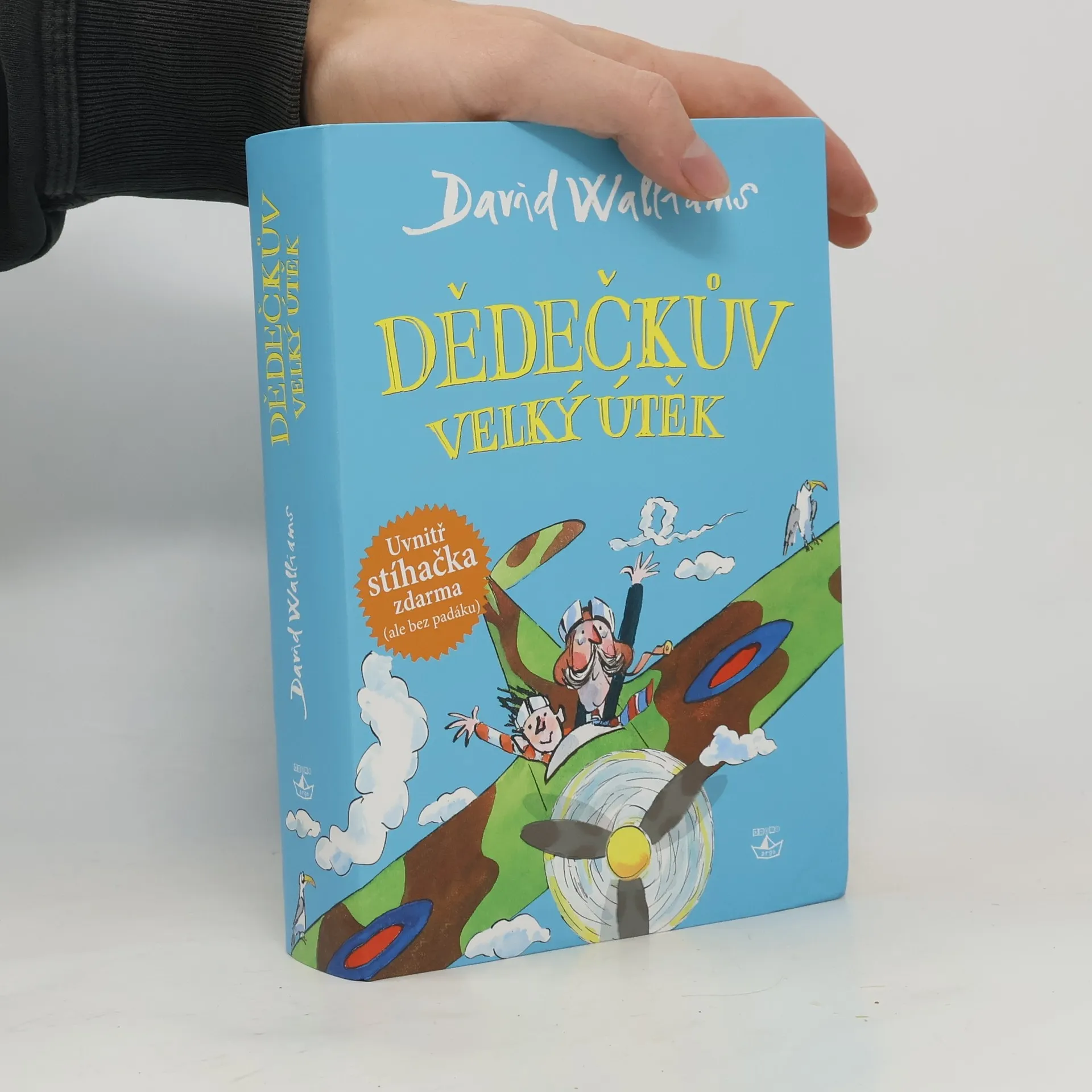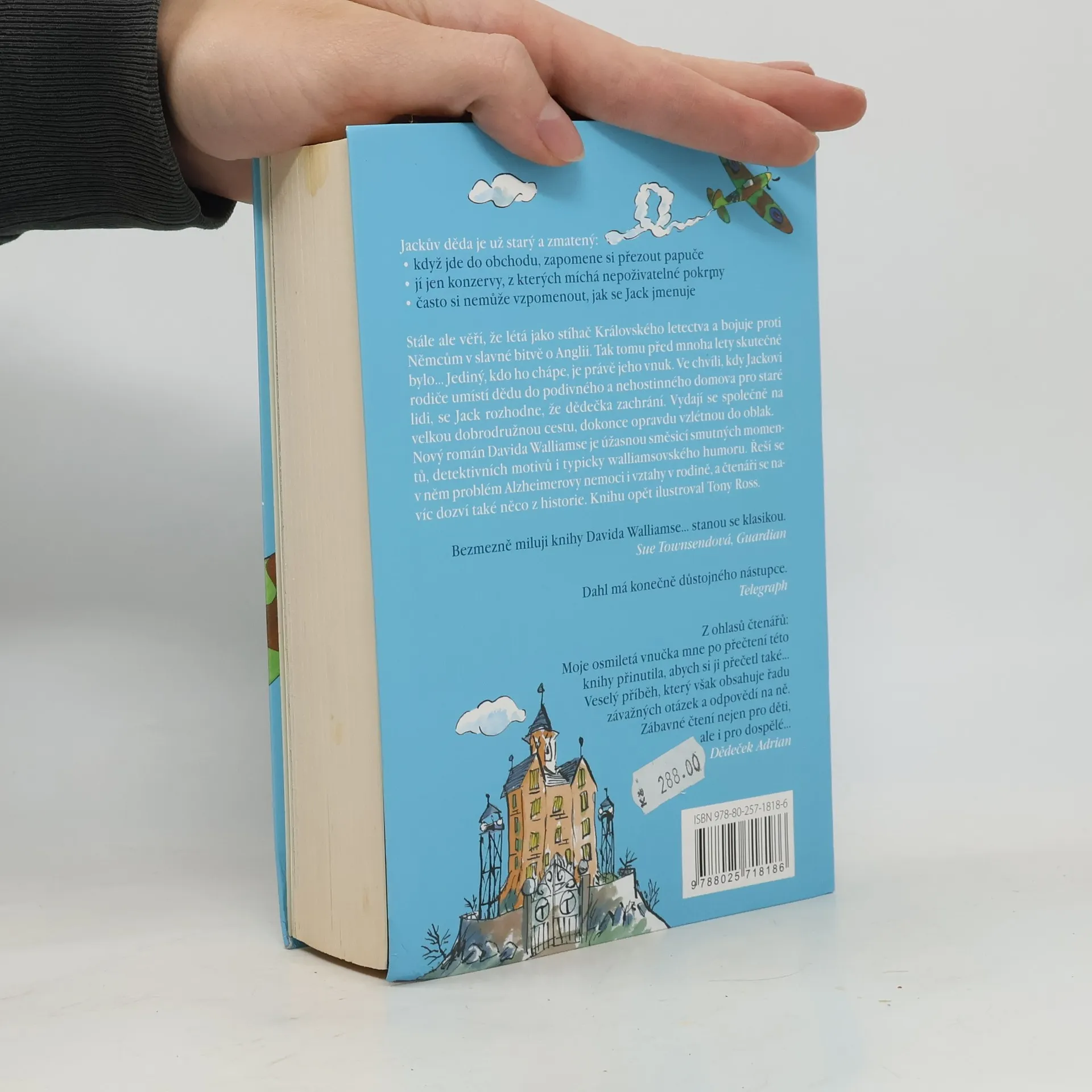 Jackův děda je už starý a zmatený: Když jde do obchodu, zapomene si přezout papuče. Jí jen konzervy, z kterých vytváří nepoživatelné míchanice. Často si nemůže vzpomenout, jak se Jack jmenuje. Stále ale věří, že létá jako stíhač Královského letectva a bojuje proti Němcům v slavné bitvě o Anglii. Tak tomu před mnoha lety skutečně bylo… Jediný, kdo ho chápe, je právě jeho vnuk. Ve chvíli, kdy Jackovi rodiče umístí dědu do podivného a nehostinného domova pro staré lidi, se Jack rozhodne, že dědečka zachrání. Vydají se společně na velkou dobrodružnou cestu, dokonce opravdu vzlétnou do oblak. Nový román Davida Walliamse je úžasnou směsicí smutných momentů, detektivních motivů i typicky walliamsovského humoru. Řeší se v něm problém Alzheimerovy nemoci, vztahy v rodině a čtenáři se navíc dozví i něco z historie. Knihu opět ilustroval Tony Ross.