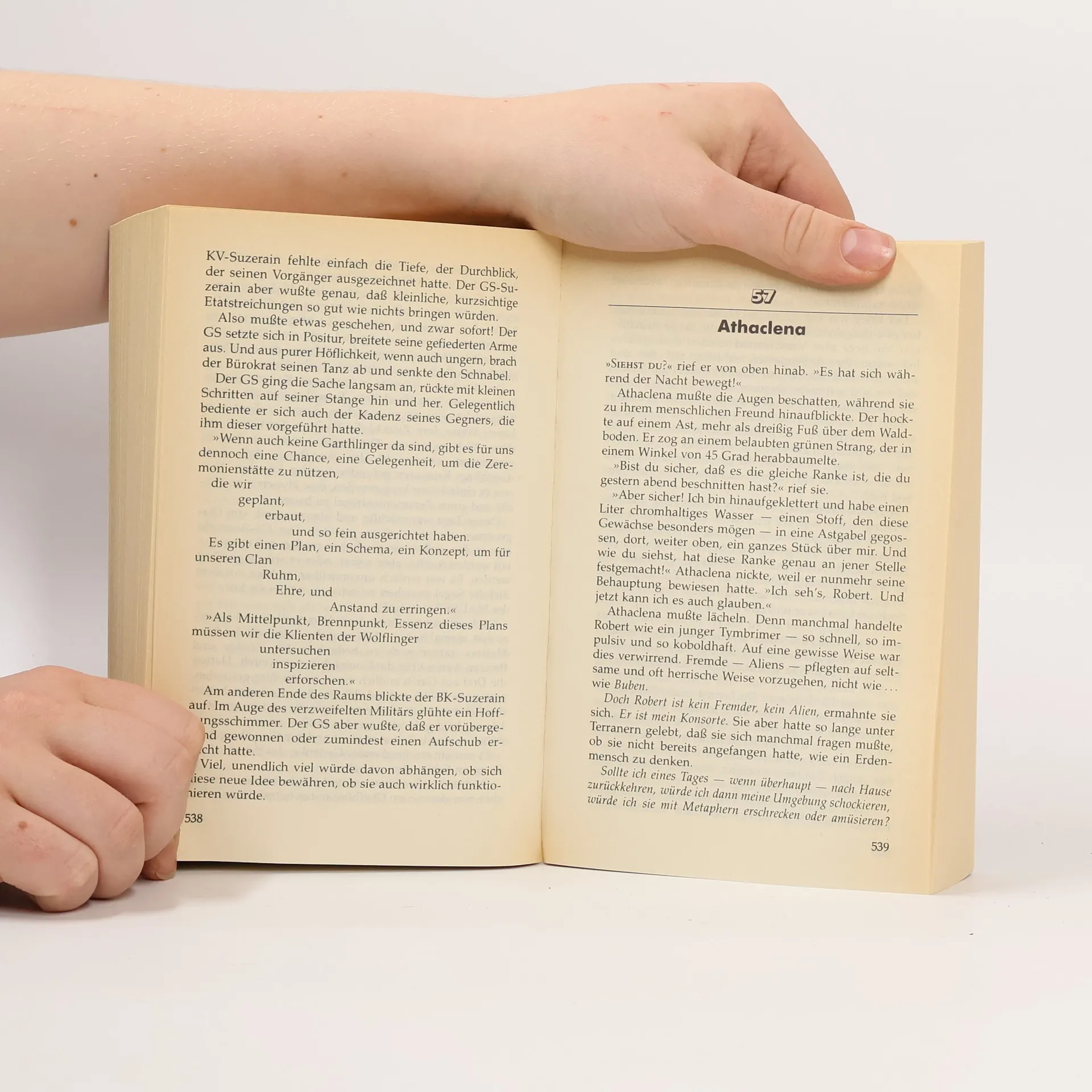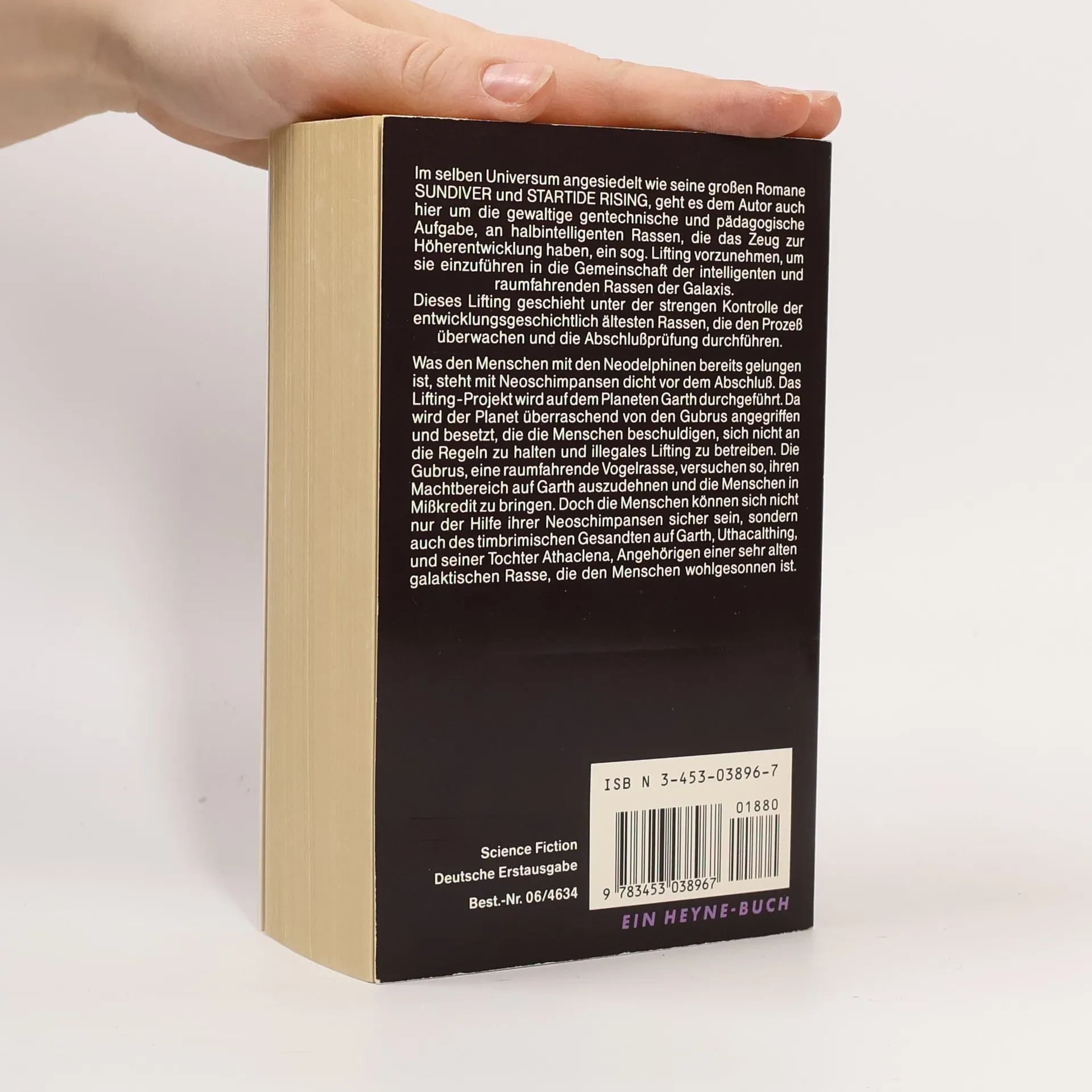 Was den Menschen mit den Neodelphinen bereits gelungen ist, steht mit Neoschimpansen dicht vor dem Abschluss. Das Lifting-Projekt wird auf dem Planeten Garth durchgeführt. Da wird der Planet überraschend von den Gubrus angegriffen und besetzt, die die Menschen beschuldigen, sich nicht an die Regeln zu halten und illegales Lifting zu betreiben. Die Gubrus, eine raumfahrende Vogelrasse, versuchen so, ihren Machtbereich auf Garth auszudehnen und die Menschen in Misskredit zu bringen. Doch die Menschen können sich nicht nur der Hilfe ihrer Neoschimpansen sicher sein, sondern auch des timbrimischen Gesandten auf Garth, Uthacalthing, und seiner Tochter Athaclena, Angehörigen einer sehr alten galaktischen Rasse, die den Menschen wohlgesonnen ist.