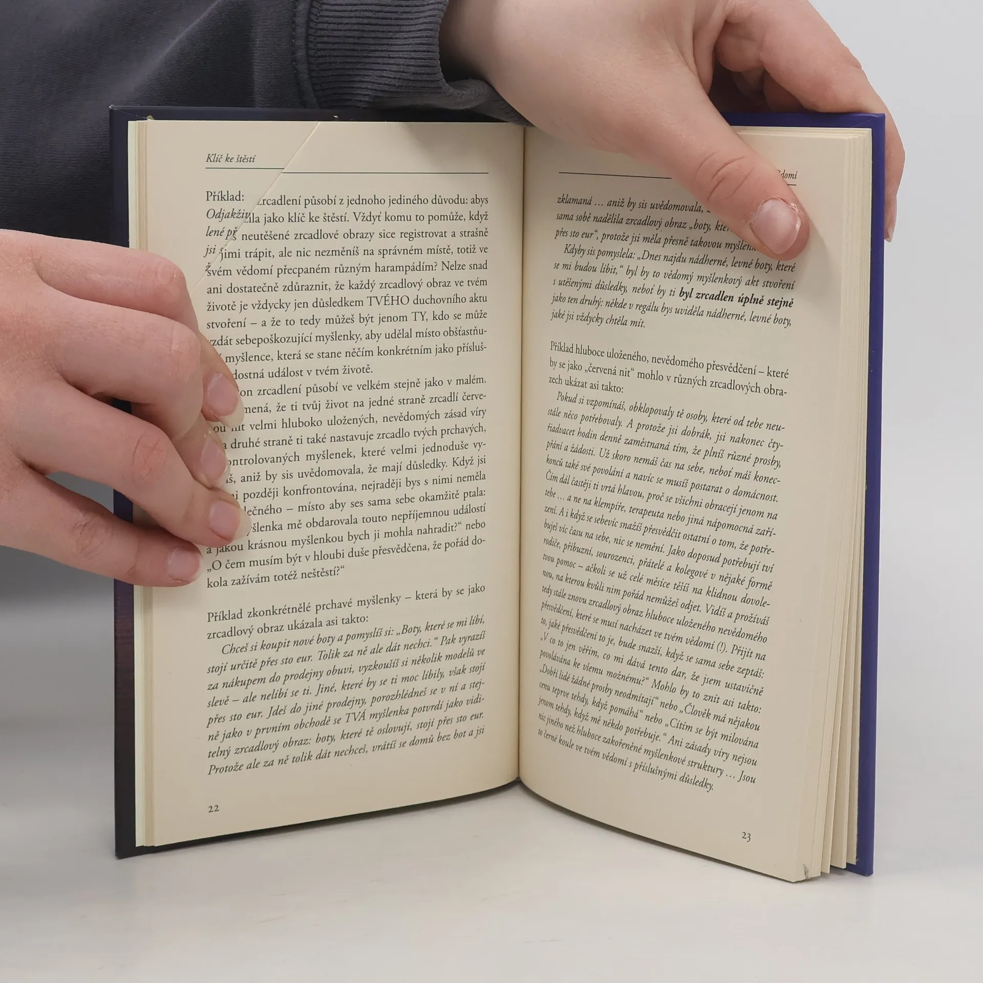 Zákon zrcadlení Vaše životní poměry a lidé, se kterými se potkáváte, zrcadlí vaše myšlení a osobní víru. Stačí se jen trochu lépe podívat, abyste poznali, že jste jak autory, tak i režiséry vašich životních událostí a příběhů. Zákon zrcadlení vždycky funguje. Tato kniha vás zve k tomu, abyste ho od nynějška začali počítat ke svým přátelům. Abyste mohli otevřít bránu ke štěstí odvážným pohledem do vlastního zrcadla. Nejstarší moudrost říká, že jste na světě proto, abyste byli šťastní. Ne tedy proto, abyste trpěli díky svým nelaskavým myšlenkám, negativním přesvědčením, falešnými zásadami víry nebo nesmyslnými zákazy. Jakmile to uznáte, budete na nejlepší cestě k proměně svého duchovního postoje – a v důsledku této proměny pak budete moci prožívat takové utěšené zrcadlové obrazy, které skutečně chcete.