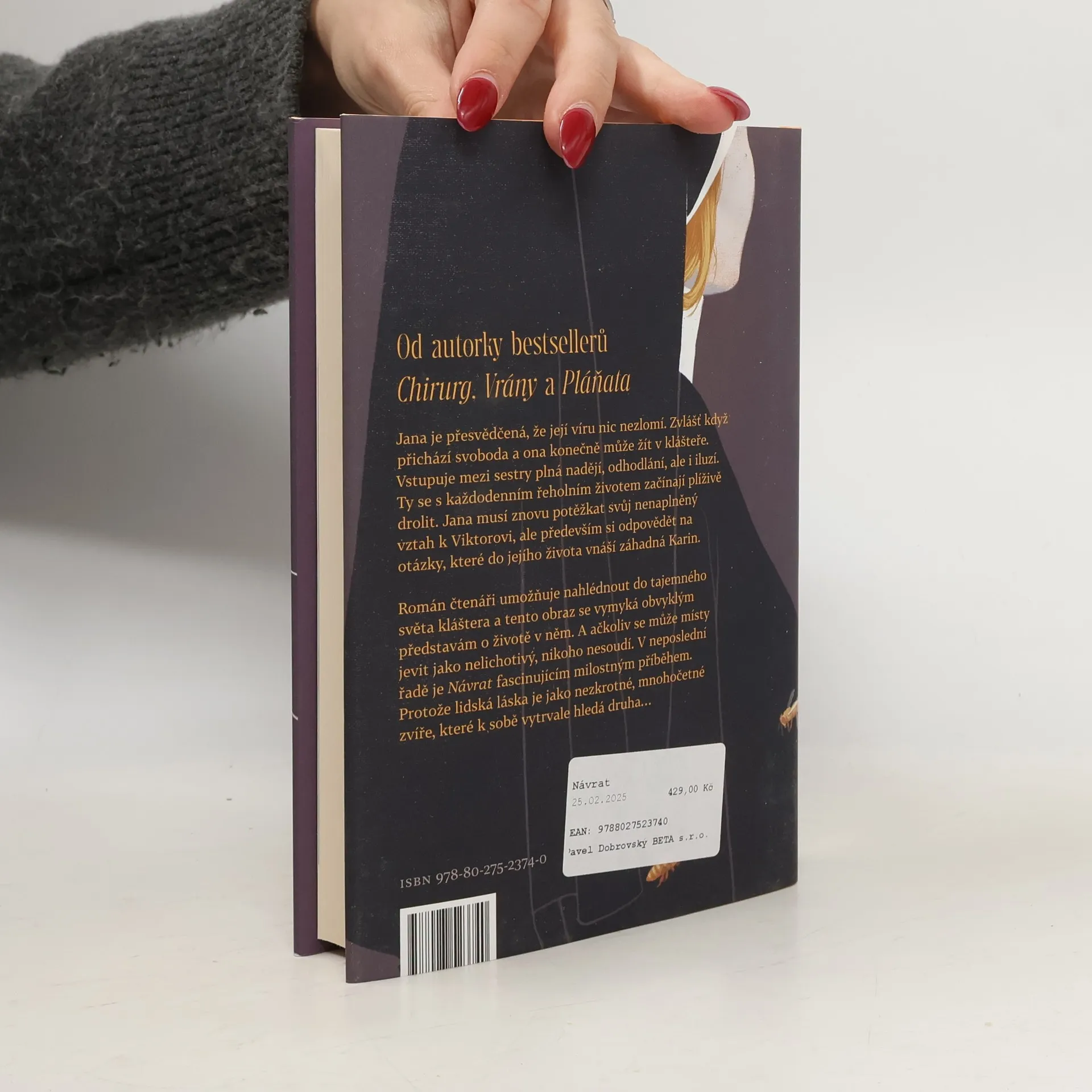 Může být láska k Bohu silnější než ta lidská? Jana je přesvědčená, že její víru nemůže zlomit vůbec nic. Zvlášť když k ní na prahu dospělosti přichází svoboda a ona konečně může žít v klášteře. Vstupuje mezi sestry plná nadějí, odhodlání, ale i iluzí. Ty se začínají skaždodenním řeholním životem plíživě drolit a nakonec úplně rozpadat. Jana musí znovu potěžkat svůj dřívější nenaplněný a bolestně „nedořečený“ vztah k Viktorovi, ale především si odpovědět na otázky, jež do jejího života vnáší záhadná a nespoutaná Karin, která se jednoho dne objeví v klášteře mezi starými ženami. Janina představa o tom, jak vypadá skutečná láska, se dramaticky mění a rozostřuje. Stejně tak se společenství sester musí denně ptát, jak se dá v proměněném světě navrátit ke svému původnímu poslání. Román spletený z mnoha jemných, ale zdařilých vypravěčských vláken čtenáři umožňuje nahlédnout do tajemného světa, který je mu běžně nepřístupný a jehož všednost naprosto neodpovídá obecně sdíleným představám. Jakkoli se takto zachycený obraz života v klášteře může místy jevit jako dost nelichotivý, nikoho nesoudí. Je to především portrét člověka se vším světlým i temným, co jeho bytí přináší. V neposlední řadě je tato kniha fascinujícím milostným příběhem. Protože lidská láska je jako nezkrotitelné, mnohočetné zvíře, které k sobě vytrvale hledá druha…
