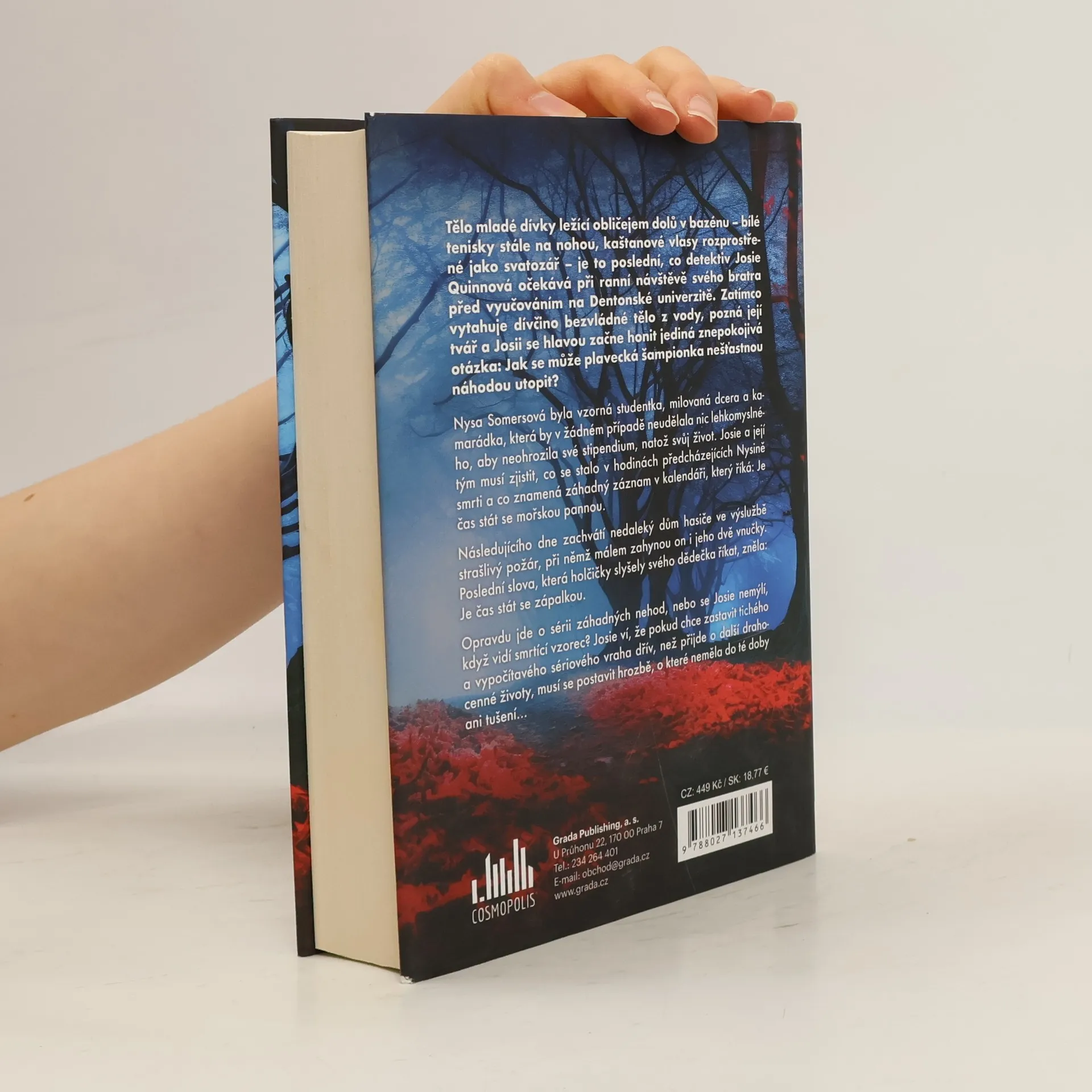 Tělo mladé dívky ležící obličejem dolů v bazénu je to poslední, co detektiv Josie Quinnová očekává při ranní návštěvě svého bratra na Dentonské univerzitě. Když však pozná dívčinu tvář, honí se Josii hlavou jediná otázka: Jak se může plavecká šampionka nešťastnou náhodou utopit? Následujícího dne zachvátí nedaleký dům hasiče ve výslužbě strašlivý požár, při němž málem zahyne on i jeho dvě vnučky. Opravdu jde o sérii záhadných úmrtí, nebo se Josie nemýlí, když vidí smrtící vzorec?