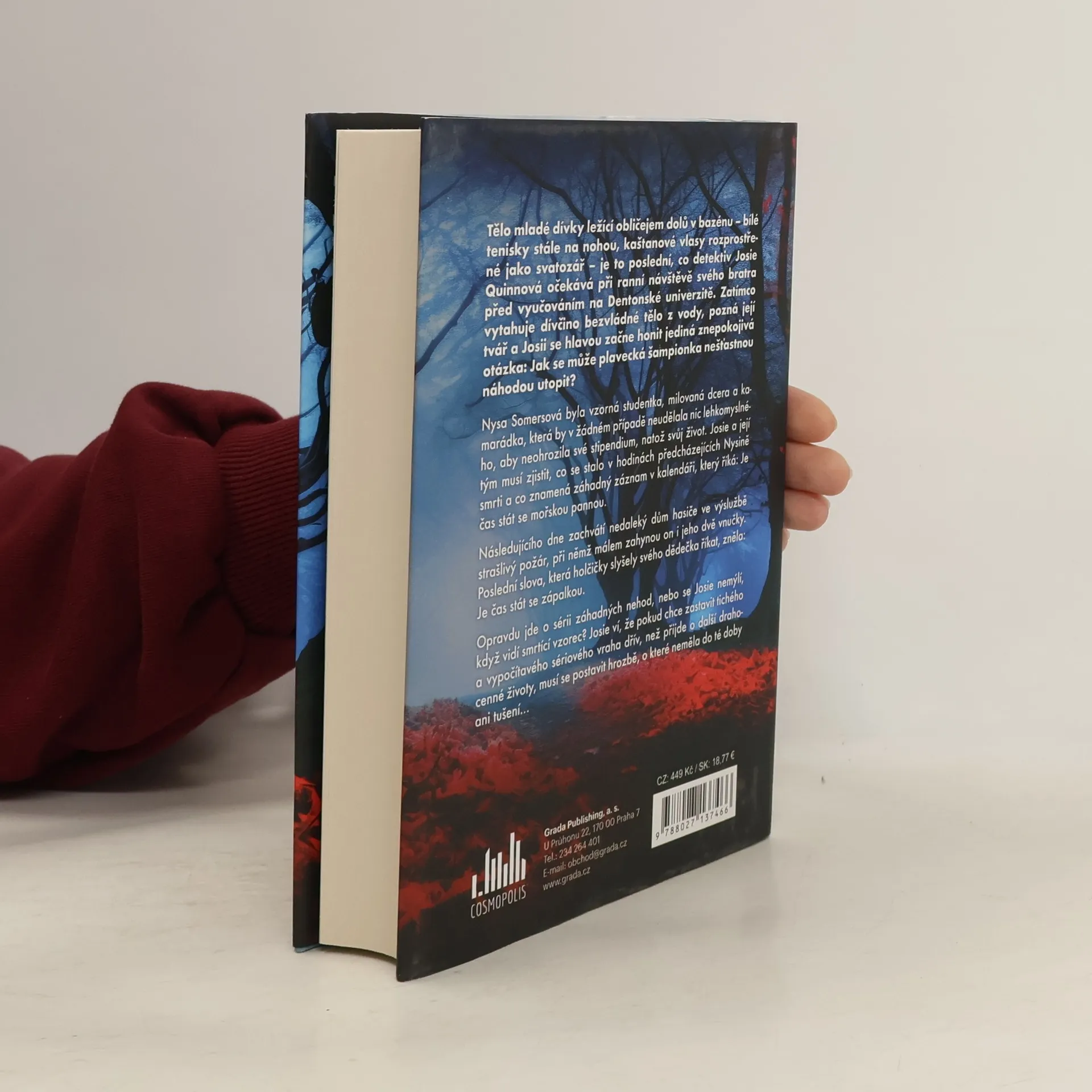 Tělo mladé dívky ležící obličejem dolů v bazénu je to poslední, co detektiv Josie Quinnová očekává při ranní návštěvě svého bratra na Dentonské univerzitě. Když však pozná dívčinu tvář, honí se Josii hlavou jediná otázka: Jak se může plavecká šampionka nešťastnou náhodou utopit? Následujícího dne zachvátí nedaleký dům hasiče ve výslužbě strašlivý požár, při němž málem zahyne on i jeho dvě vnučky. Opravdu jde o sérii záhadných úmrtí, nebo se Josie nemýlí, když vidí smrtící vzorec?
