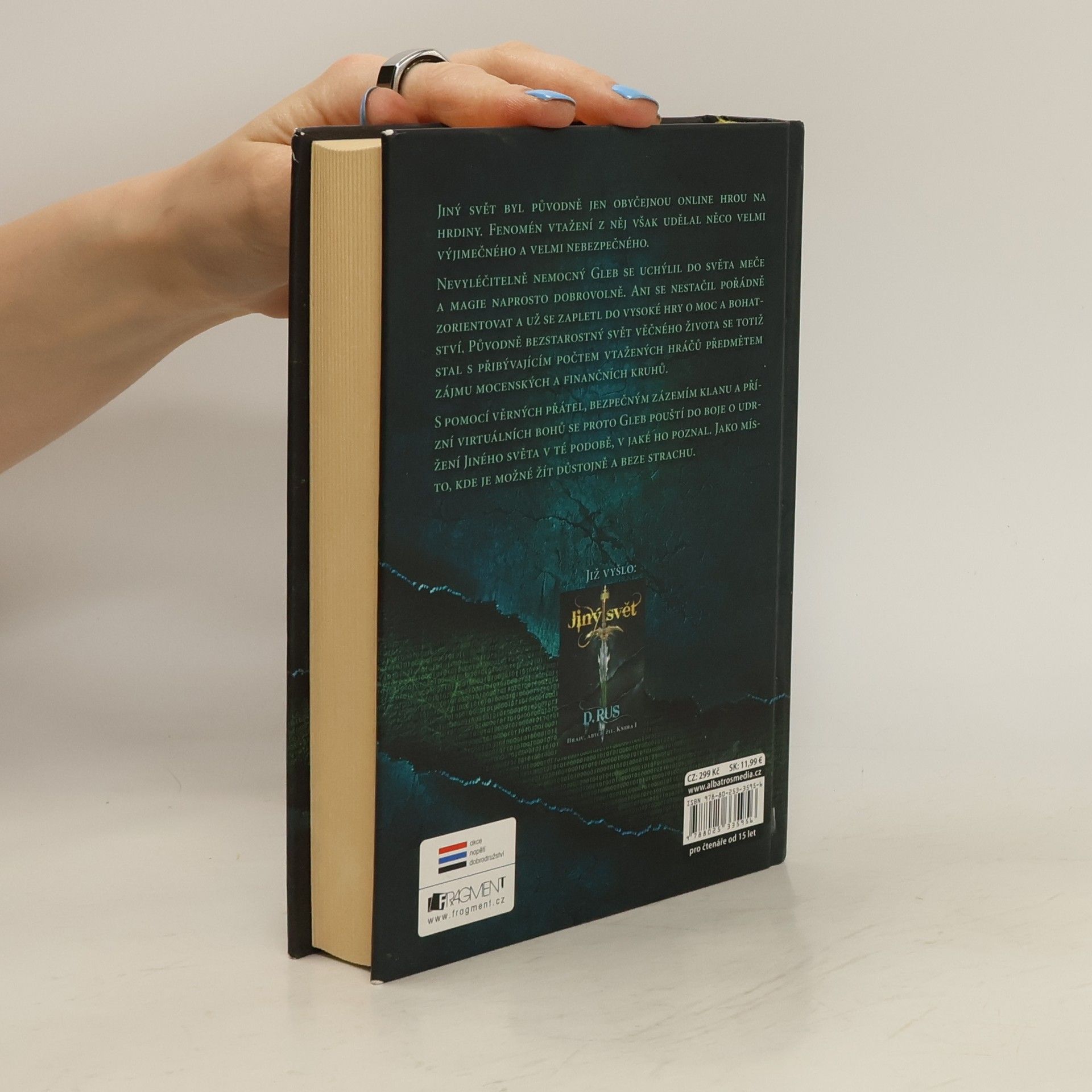 Jiný svět byl původně jen obyčejnou online hrou na hrdiny. Fenomén vtažení z něj však udělal něco velmi výjimečného a velmi nebezpečného. Nevyléčitelně nemocný Gleb se uchýlil do světa meče a magie naprosto dobrovolně. Ani se nestačil pořádně zorientovat a už se zapletl do vysoké hry o moc a bohatství. Původně bezstarostný svět věčného života se totiž stal s přibývajícím počtem vtažených hráčů předmětem zájmu mocenských a finančních kruhů. S pomocí věrných přátel, bezpečným zázemím klanu a přízní virtuálních bohů se proto Gleb pouští do boje o udržení Jiného světa v té podobě, v jaké ho poznal. Jako místo, kde je možné žít důstojně a beze strachu.