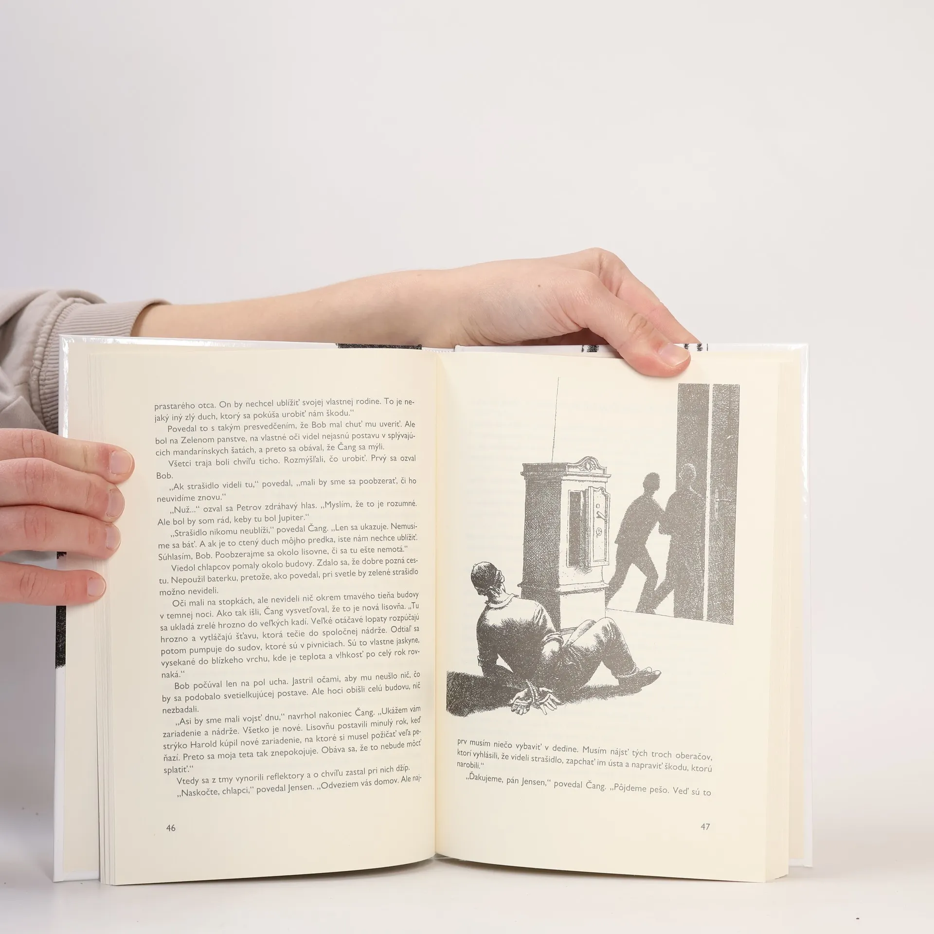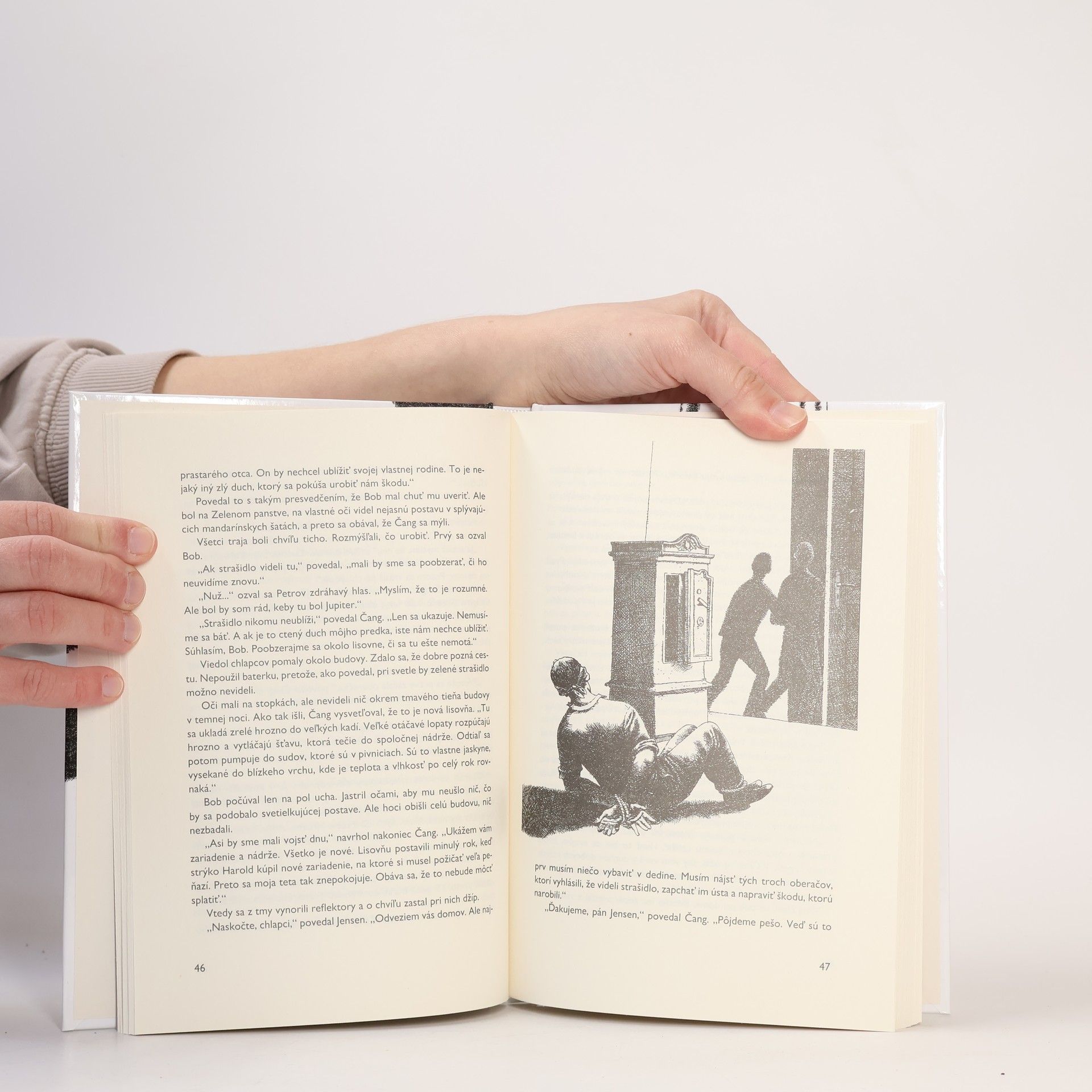 Trojica detektívov sa dostane do starého domu, ktorý majú zbúrať. Prežijú v ňom veľa strachu a napätia, kým sa im podarí rozlúštiť záhadu zeleného prízraku, ktorý sa tam zjavuje. Dokonca aj noviny zverejnia o ňom správu, že ho niektorí obyvatelia videli potulovať sa po meste. Vraj si hľadá nový domov. Okrem strašidla sa tu stretnete so zvláštnymi perlami a so psíkom, ktorý v príbehu nehrá žiadnu úlohu, pretože nič nerobí. Alebo hrá? Nerobiť nič je niekedy rovnako dôležité ako niečo robiť.