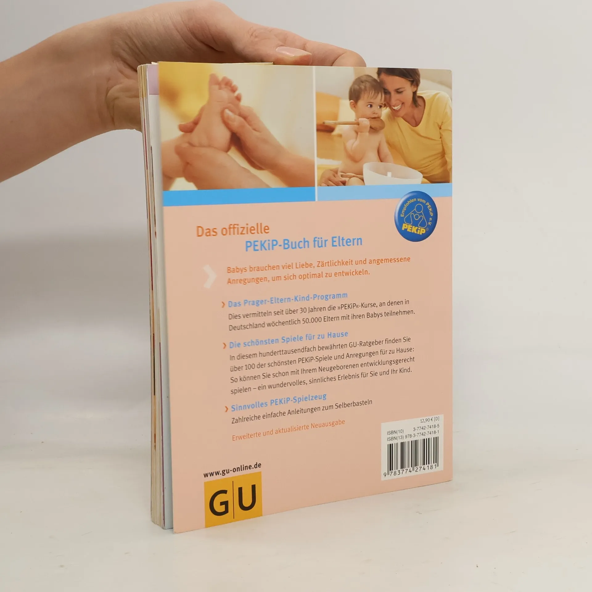 Mit PEKiP, dem ? Prager-Eltern-Kind-Programm?, können Eltern die Entwicklung ihres Babys optimal unterstützen. Der 100.000-fach bewährte GU-Ratgeber zu diesem Thema liegt nun in einer erweiterten Neuauflage vor. Übersichtlich und kompakt er-fahren Eltern zunächst alles Wichtige zur Entwicklung ihres Kindes im ersten Jahr. Mit den jetzt über 100 Spielen und Be-wegungsanregungen, praktisch nach Altersgruppen geordnet, können Eltern mit ihrem Baby zu Hause eine wunderschöne, gemeinsame Spielzeit genießen und gleichzeitig seine Fähigkeiten gezielt fördern. Zahlreiche Anleitungen für sinnvolles Spielzeug zum Selberbasteln runden das Buch ab.Extra: Poster mit den schönsten PEKiP-Spielen