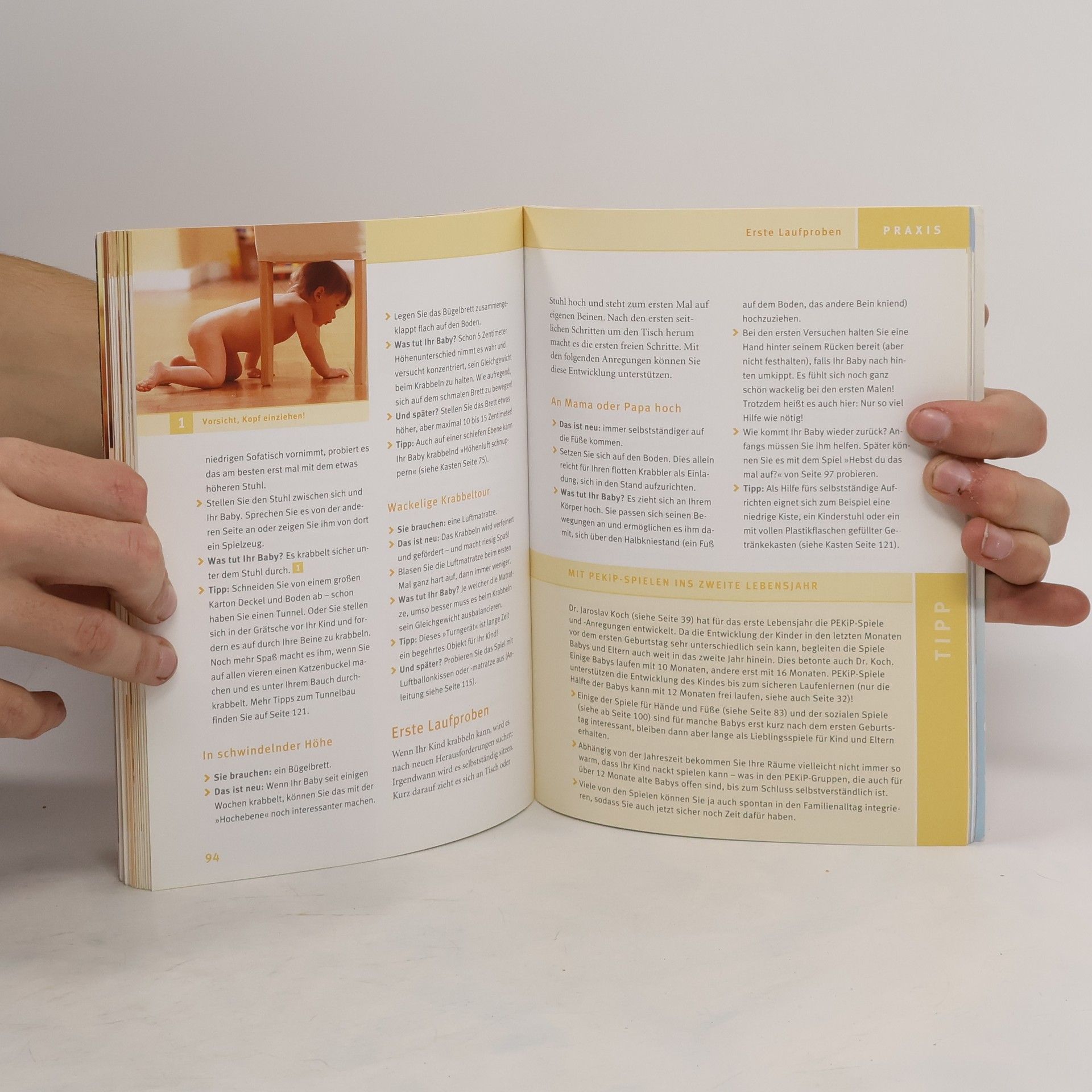 Mit PEKiP, dem ? Prager-Eltern-Kind-Programm?, können Eltern die Entwicklung ihres Babys optimal unterstützen. Der 100.000-fach bewährte GU-Ratgeber zu diesem Thema liegt nun in einer erweiterten Neuauflage vor. Übersichtlich und kompakt er-fahren Eltern zunächst alles Wichtige zur Entwicklung ihres Kindes im ersten Jahr. Mit den jetzt über 100 Spielen und Be-wegungsanregungen, praktisch nach Altersgruppen geordnet, können Eltern mit ihrem Baby zu Hause eine wunderschöne, gemeinsame Spielzeit genießen und gleichzeitig seine Fähigkeiten gezielt fördern. Zahlreiche Anleitungen für sinnvolles Spielzeug zum Selberbasteln runden das Buch ab.Extra: Poster mit den schönsten PEKiP-Spielen