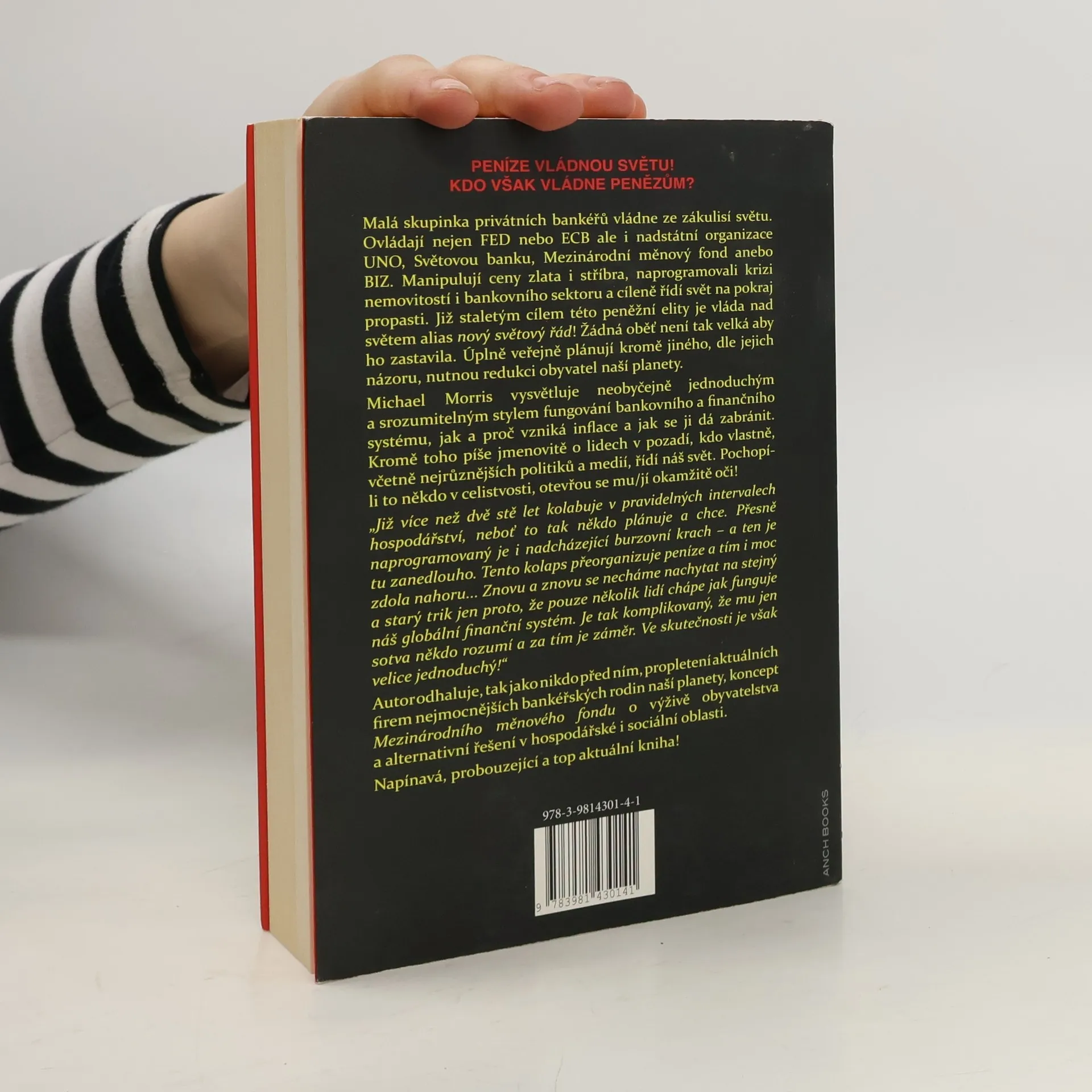 Peníze vládnou světu! Kdo však vládne penězům? Malá skupinka privátních bankéřů vládne ze zákulisí světu. Ovládají nejen FED nebo ECB ale i nadstátní organizace UNO, Světovou banku, Mezinárodní měnový fond anebo BIZ. Manipulují ceny zlata i stříbra, naprogramovali krizi nemovitostí i bankovního sektoru a cíleně řídí svět na pokraj propasti. Již staletým cílem této peněžní elity je vláda nad světem alias nový světový řád! Žádná oběť není tak velká aby jej zastavila. Úplně veřejně plánují kromě jiného, dle jejich názoru, nutnou redukci obyvatel naší planety.