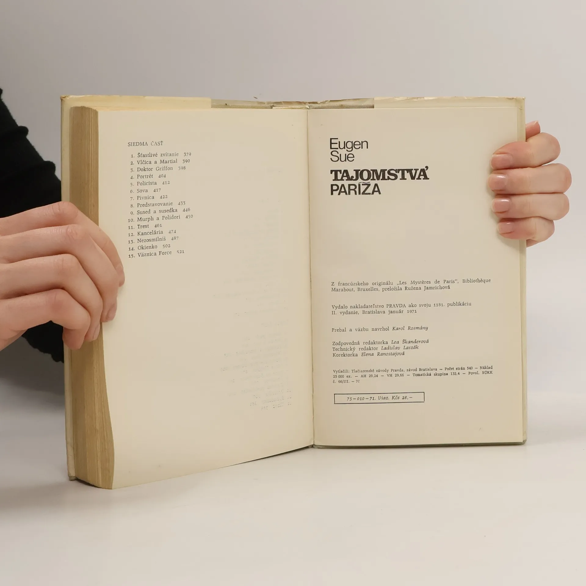 Slávny román Eugena Sue Tajomstvá Paríža približuje atmosféru parížskeho podsvetia, okorenenú rázovitými typmi a prelína sa s ovzduším prepychových aristokratických salónov, ale aj brlohov veľkomestskej bedače. A na tejto veľkej mape ciest a križovatiek ľudských životov bude čitateľ akiste vďačne sledovať šťastné i nešťastné osudy hrdinov a trestajúcu i odmeňujúcu ruku záhadného dobrodinca...V druhej knihe je spolu 2. a 3. diel románu.