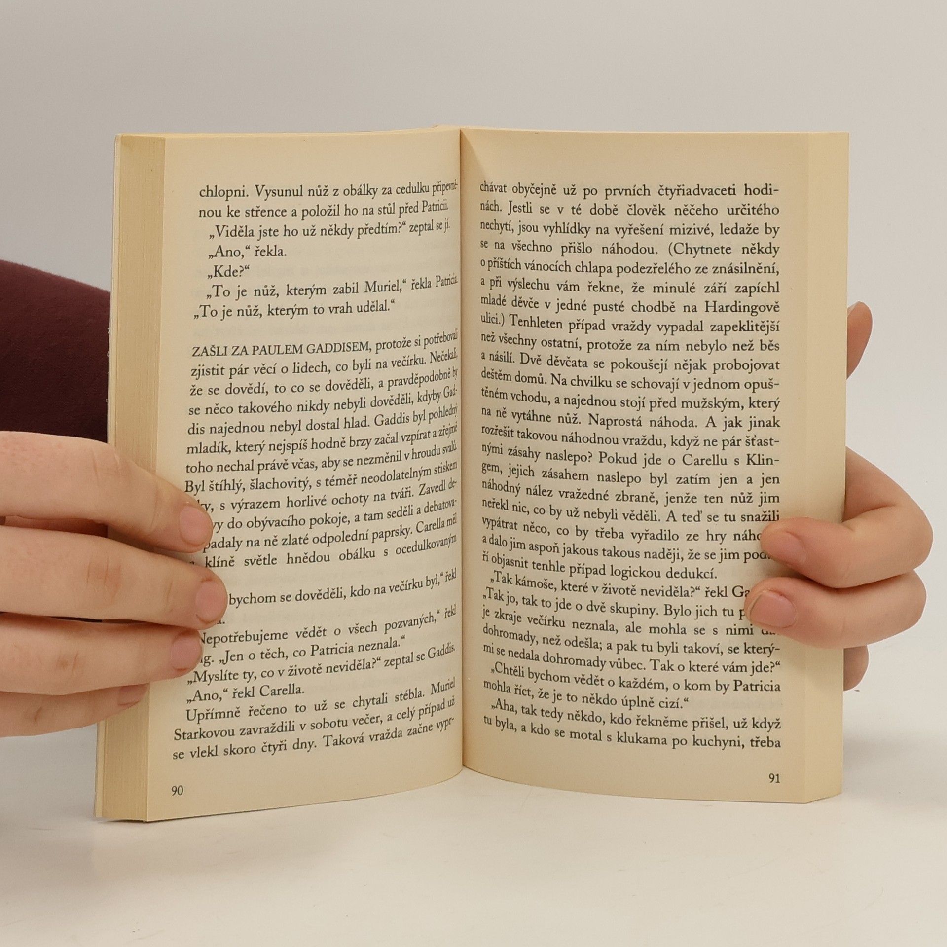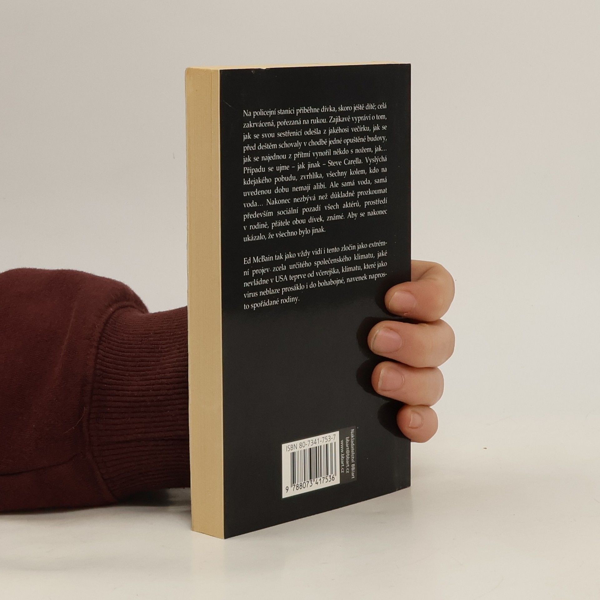 S nožem na rodinná pouta. Stephen Carella vyslýchá kdejakého pobudu, zvrhlíka, všechny kolem, kdo na uvedenou dobu nemají alibi. Ale samá voda, samá voda... Nakonec nezbývá než důkladně prozkoumat především sociální pozadí všech aktérů, prostředí v rodině, přátele obou dívek, známé. Aby se nakonec ukázalo, že všechno bylo jinak. - Ed McBain tak jako vždy vidí i tento zločin jako extrémní projev zcela určitého společenského klimatu, jaké nevládne v USA teprve od včerejška, klimatu, které jako virus neblaze prosáklo i do bohabojné, navenek naprosto spořádané rodiny. První brožované vydání v českém jazyce.