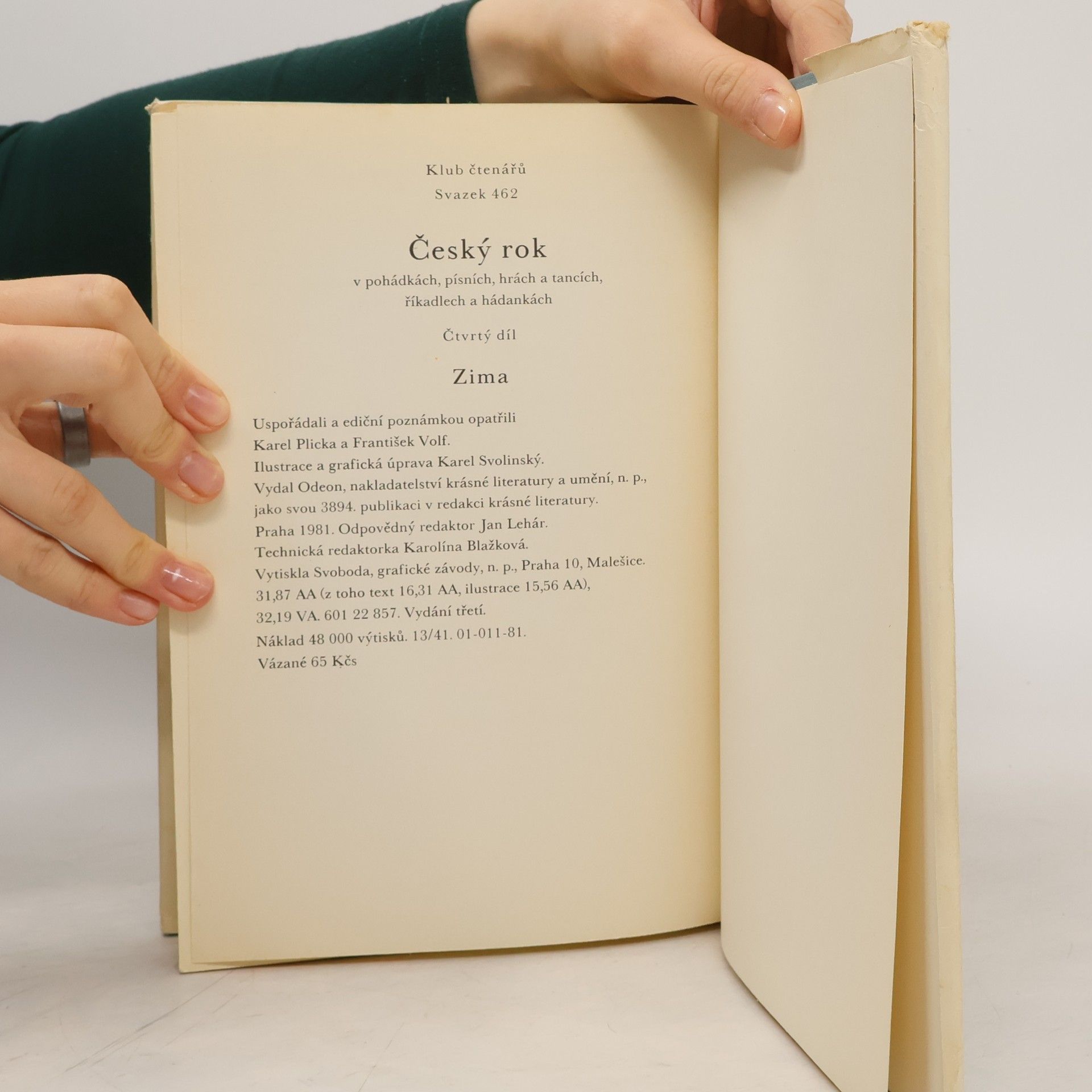 There are currently of book Český rok v pohádkách, písních, hrách a tancích, říkadlech a hádankách. Čtvrtý díl. Zima (1981) in stock.