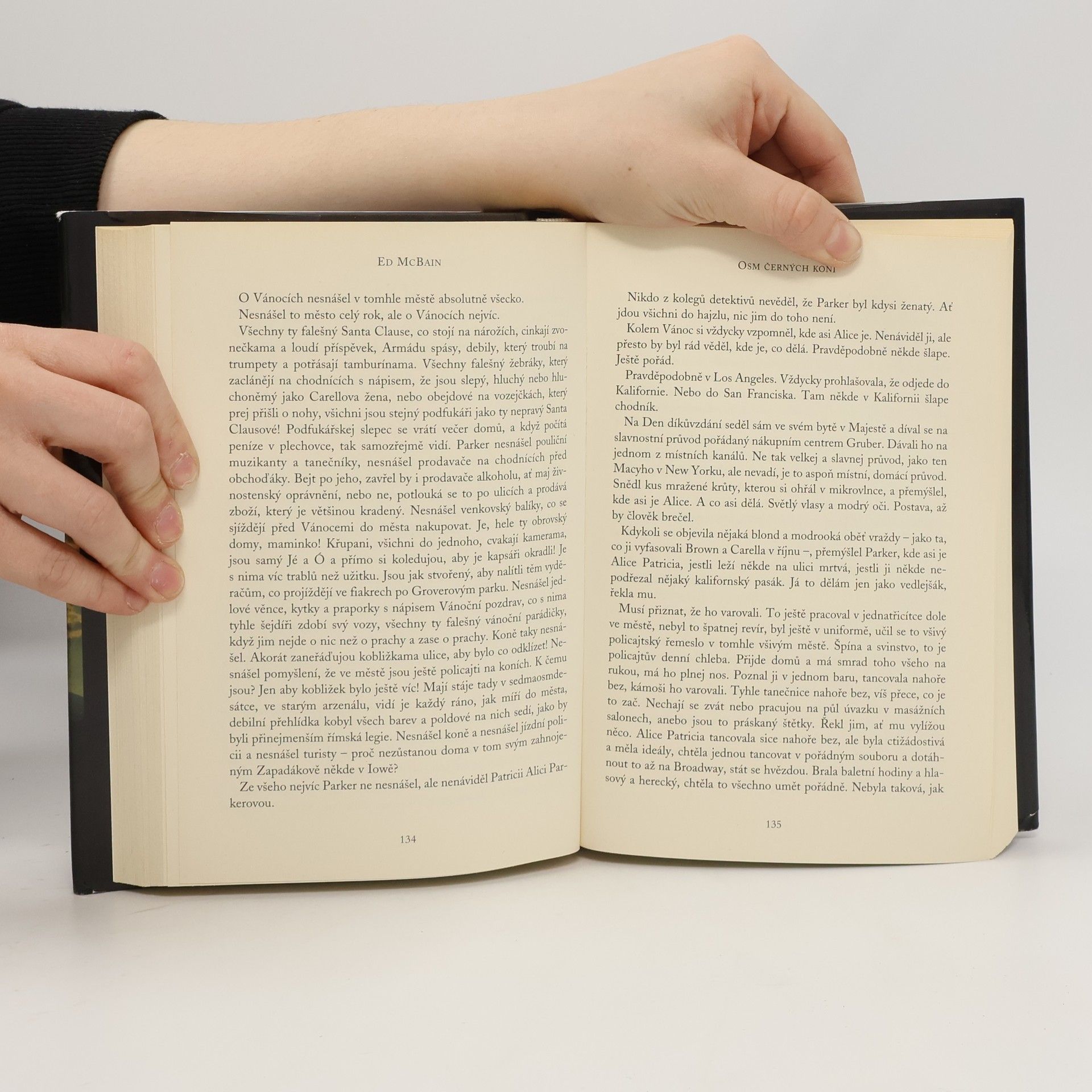 Na policejní stanici 87. revíru docházejí anonymní dopisy. Obsahují fotografie, jejichž smysl je nejasný: troje policejní pouta, pět vysílaček, osm černých koní… Kdo je odesílá? Co jimi sleduje? Chce vyhrožovat? A jaký „trest“ čeká na konci té zlověstné řady dopisů? Detektiv Steve Carella si dlouho neví rady. K dovršení všeho se i vraždí. Čím víc je podivných vzkazů, napětí narůstá a kruh se uzavírá… Každý člen pátračky samozřejmě věděl, že to, co skáče nahoře na stránce, jsou koně. Věděli taky, že jich je osm a že jsou černí, a když se to všechno dá dohromady, je z toho osm černých koní. Jenže to samo o sobě neznamenalo nic. Na druhé straně když to poslal Hluchý, něco to znamenat muselo. Protože Hluchý jim často posílal sdělení, která vypadala, jako že nic neznamenají, dokud se nad nimi člověk nezamýšlel, a když se zamyslel, tak něco znamenala. Jednu věc se za celá ta léta o Hluchém naučili: že hraje poctivou hru. Nevěděli sice, proč hraje poctivě, ale oni vůbec málokdy chápali duševní pochody zločinců, obzvláště geniálních zločinců. Podle nich Hluchý geniální zločinec byl. Proto hrál poctivou hru a posílal sdělení, která vypadala jako nesmyslná, i když ve skutečnosti smysl měla. Že je to Hluchý, usoudili podle přeškrtnutého ucha.