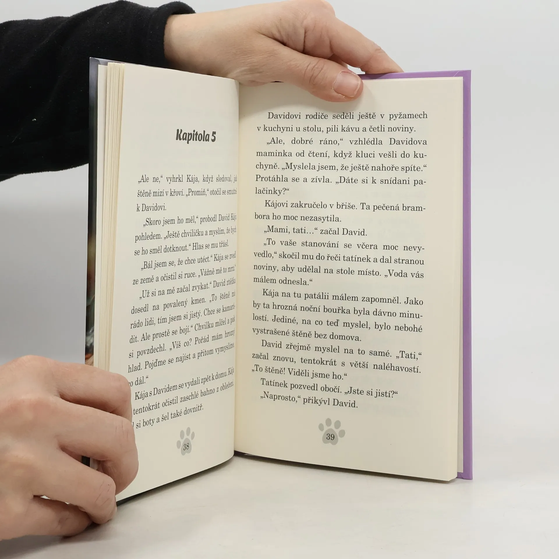 Kája a jeho kamarád David stanují v noci na zahradě, když je překvapí silná bouře. Při útěku do bezpečí Kája ve tmě zahlédne zářící pár očí. Mohlo by to být opuštěné štěně, které se v nečase schovává samo venku? Druhý den chlapci skutečně najdou zraněného a vyděšeného pejska. Když si získají jeho důvěru, odvedou ho k veterináři. Přestože je štěně nemocné, všichni věří, že díky jejich péči se uzdraví a brzy najde milující domov.